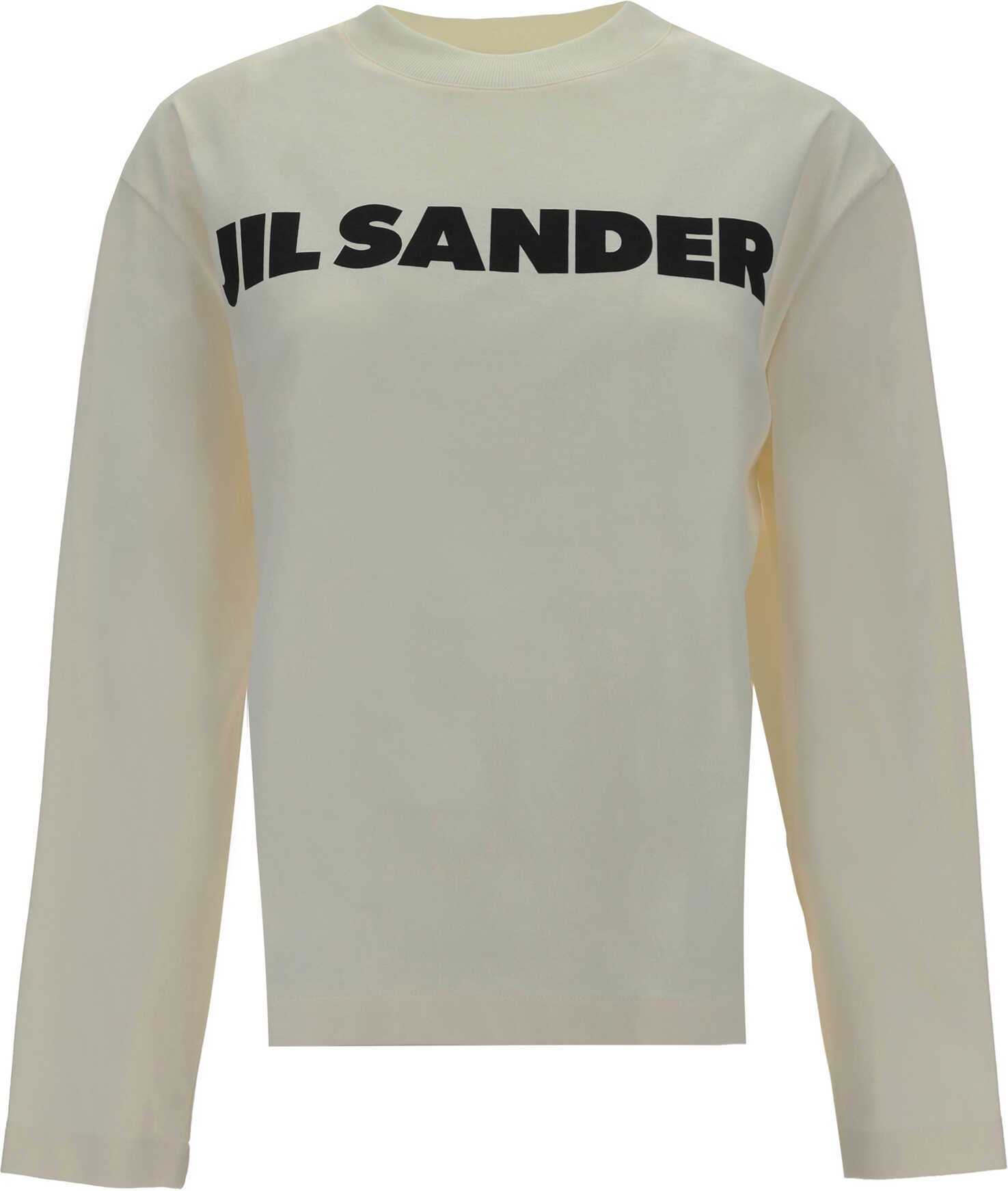 Cotton Long Sleeved by Jil Sander, featuring ribbed crew neck, iconic brand monogram contrasting on front, monochrome pattern, regular fit.
