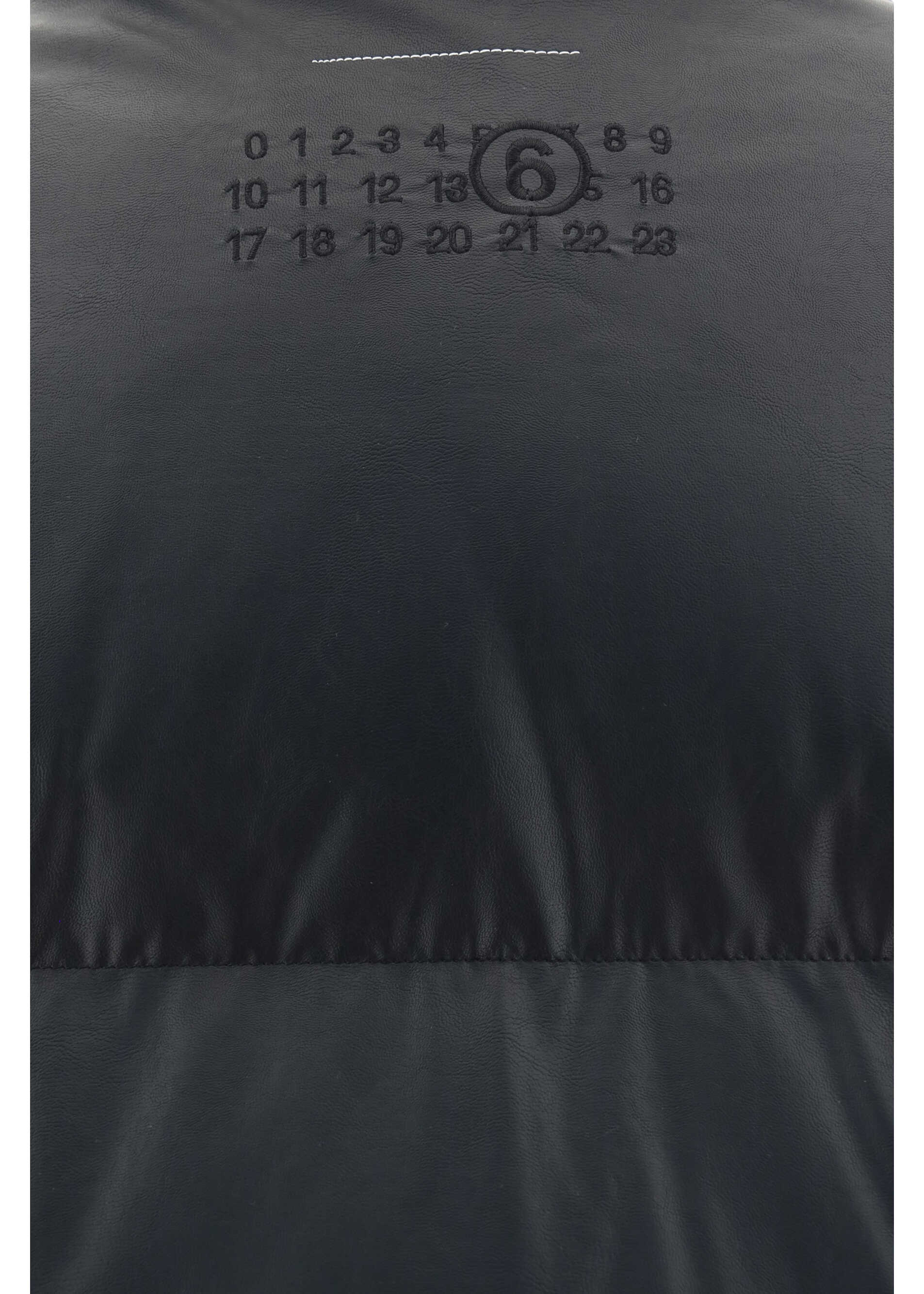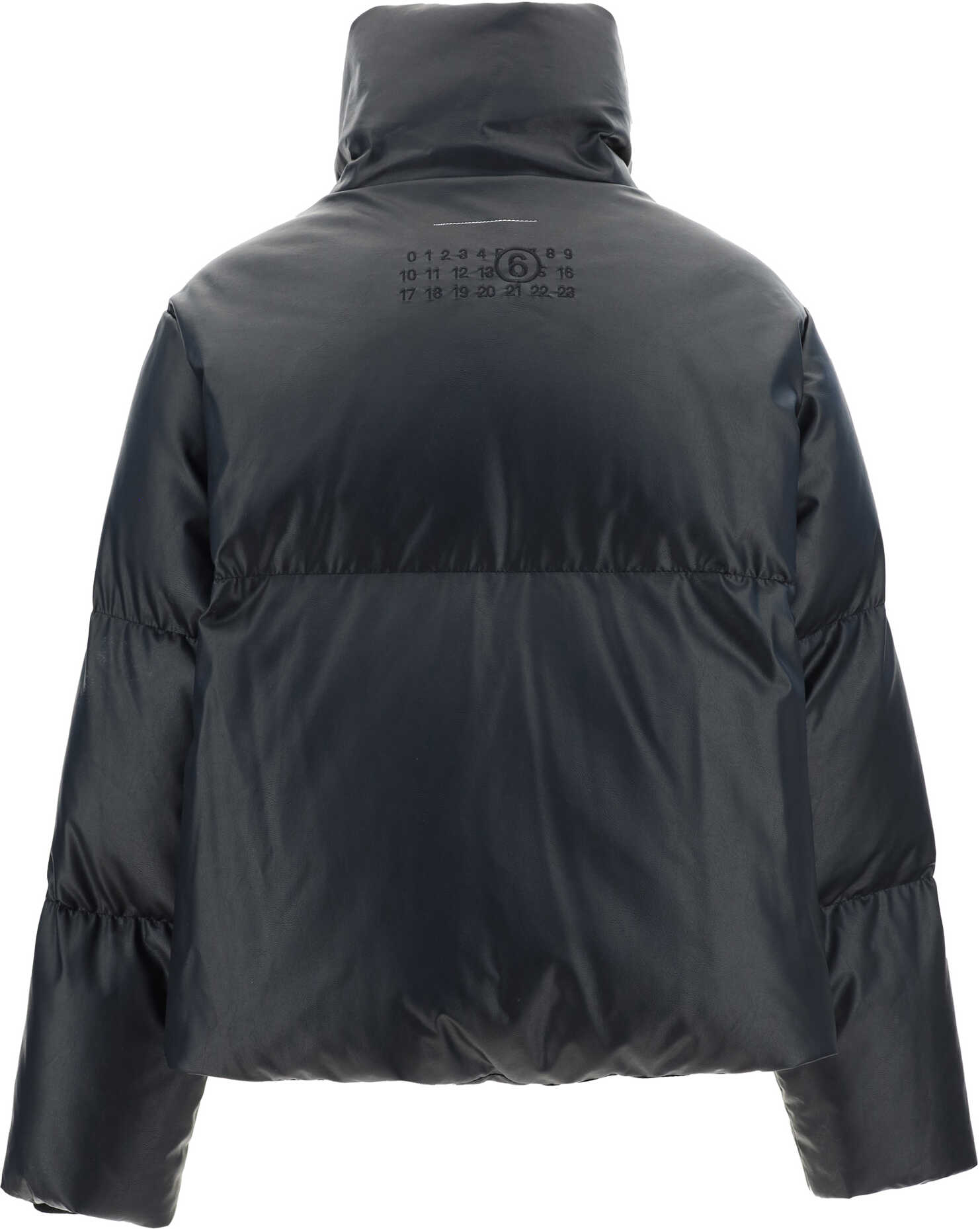 Down Jacket by MM6, high collar, front zipper and button closure, two side flap welt pockets, elastic ribbed cuffs, all-over quilted and padded design, oversize fit.