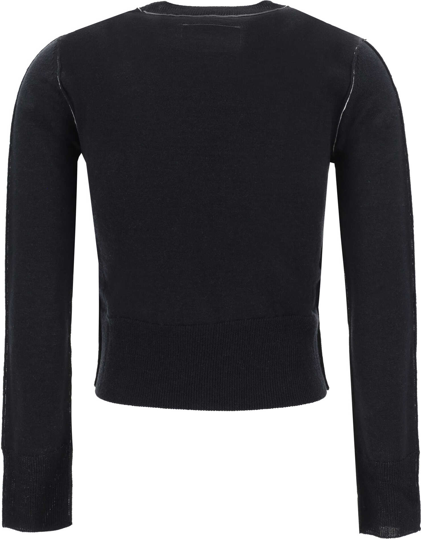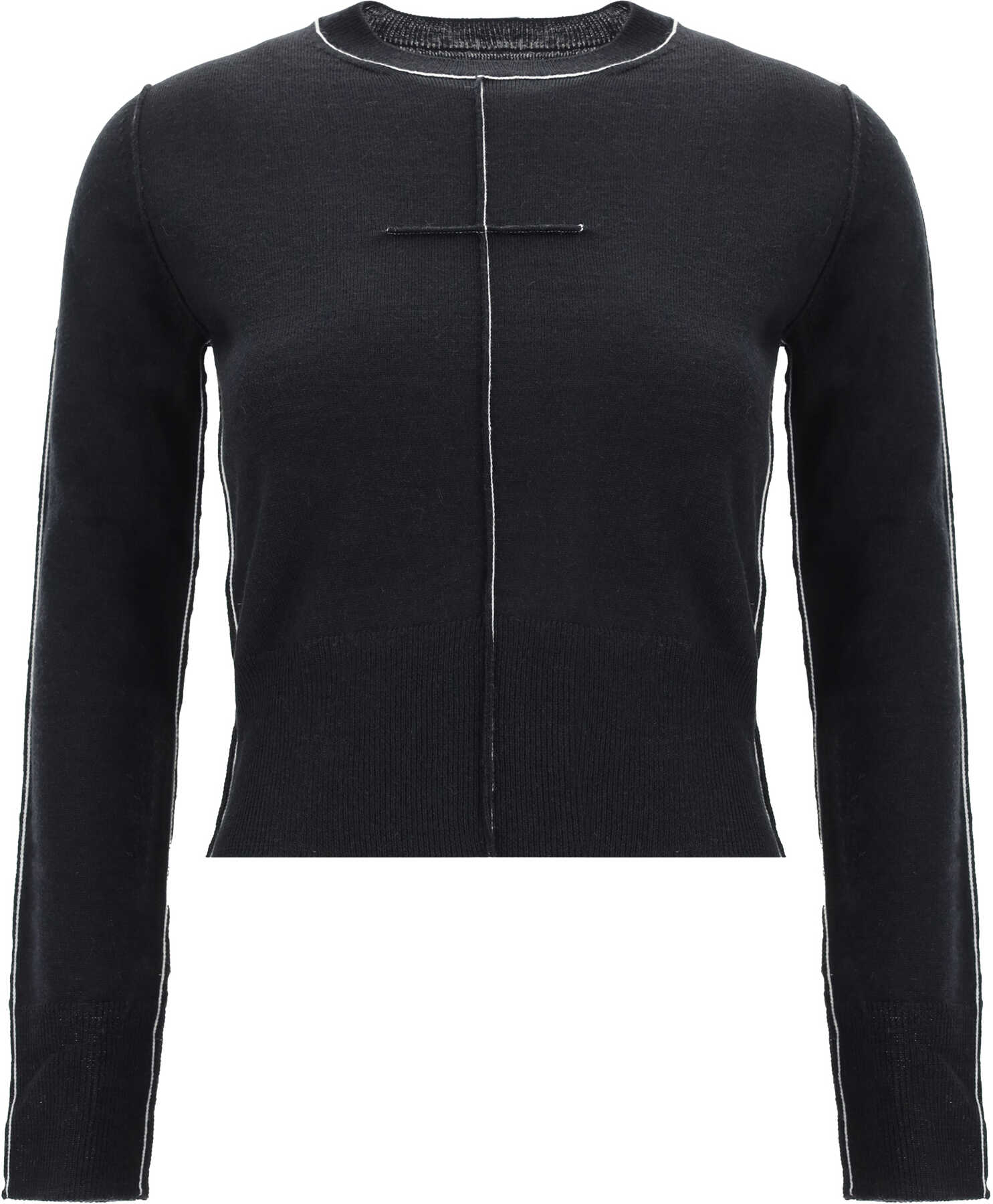 Virgin Wool Sweater by MM6, cropped pattern, ribbed crew neck, ribbed high hem, ribbed cuffs, contrast stitching detail, slim fit.