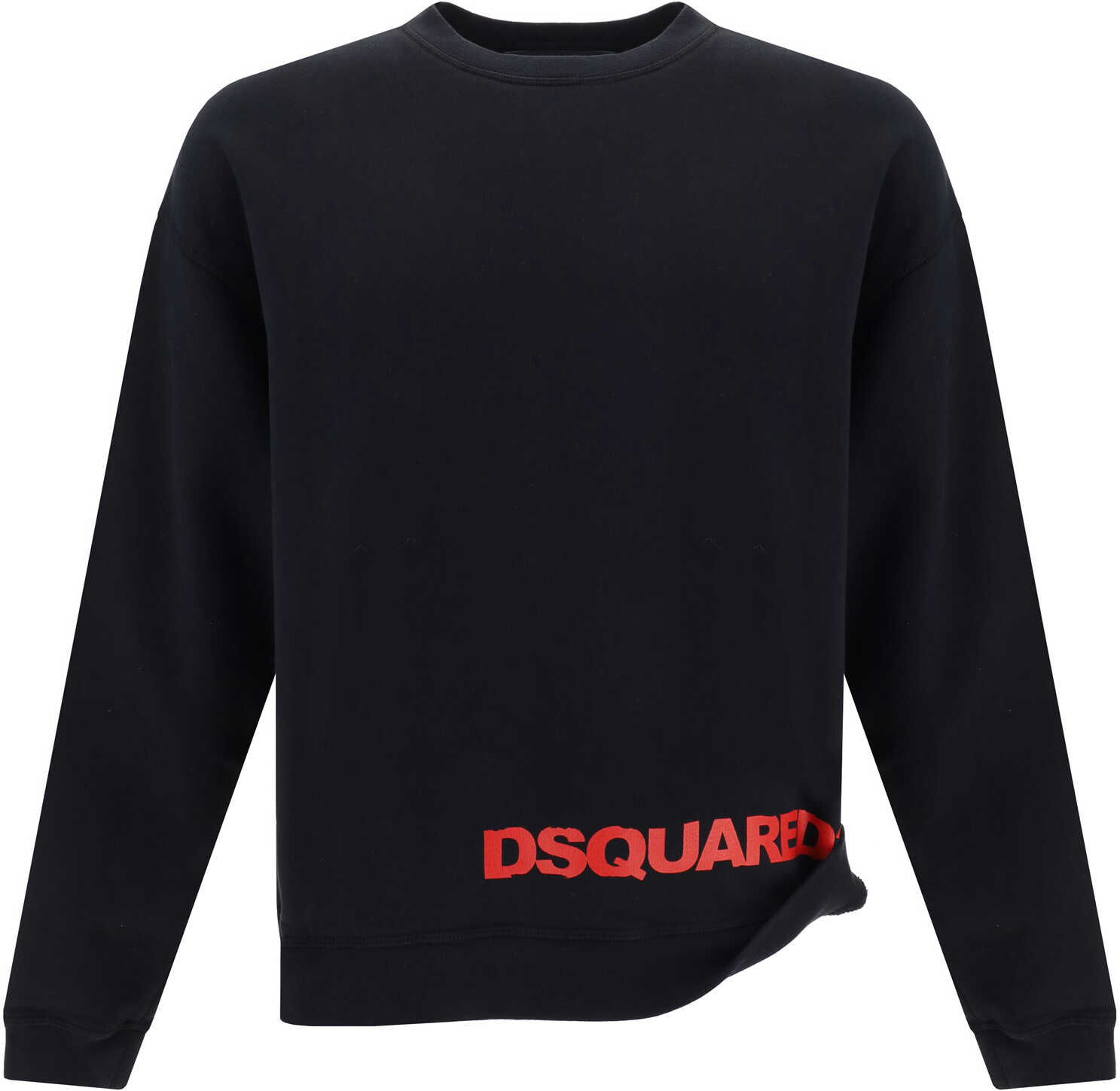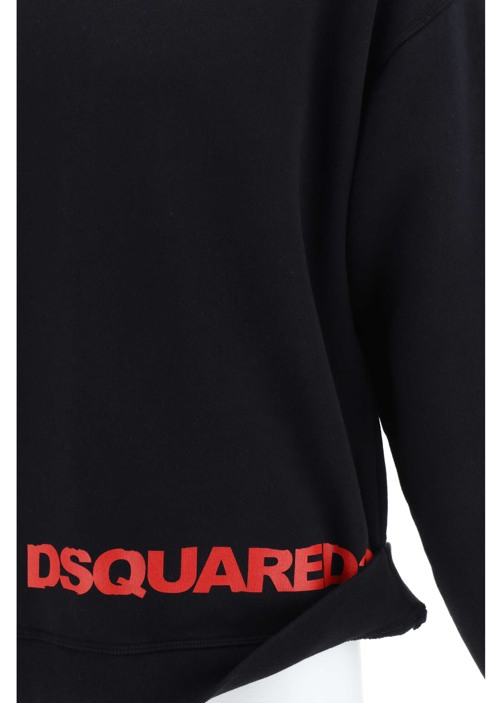 Cotton Sweatshirt by Dsquared2, ribbed crew neck, ribbed cuffs, ribbed hem, plush interior, contrasting iconic brand monogram on front, smock stitch detail with turn-up at bottom hem, monochrome design, regular fit.