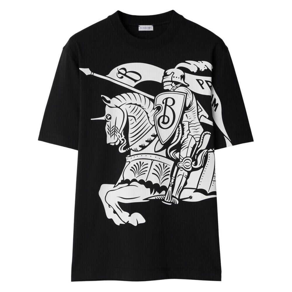 Black/white cotton lightweight jersey signature equestrian knight print to the front crew neck short sleeves straight hem we've partnered with good on you — an independent agency that rates how brands perform in relation to their impact on the planet, people and animals, with a multi-criteria rating simplified to a five points scale. in order to be awarded our conscious label, larger brands need to score a minimum of four out of five ('good'), while smaller brands must score at least three out of five ('it's a start'). this item comes from a brand rated three out of five ('it's a start') by good on you at the time it was added on farfetch. please note, this is a brand-level rating and does not guarantee that this product is made with conscious materials. learn more about what makes a product conscious on our conscious criteria page