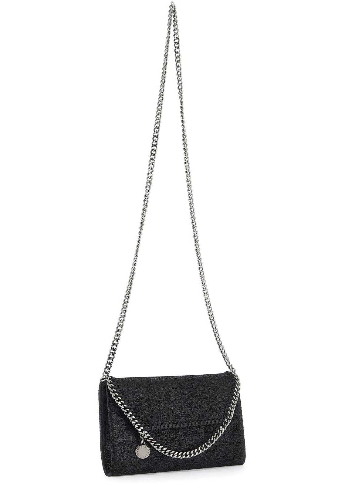 Stella McCartney crossbody bag crafted in shaggy deer faux leather with metal chain flap edge and shoulder strap. Magnetic button closure, branded fabric lining and one inner open flat pocket. Silver-finished metalware and iconic medal with engraved logo.