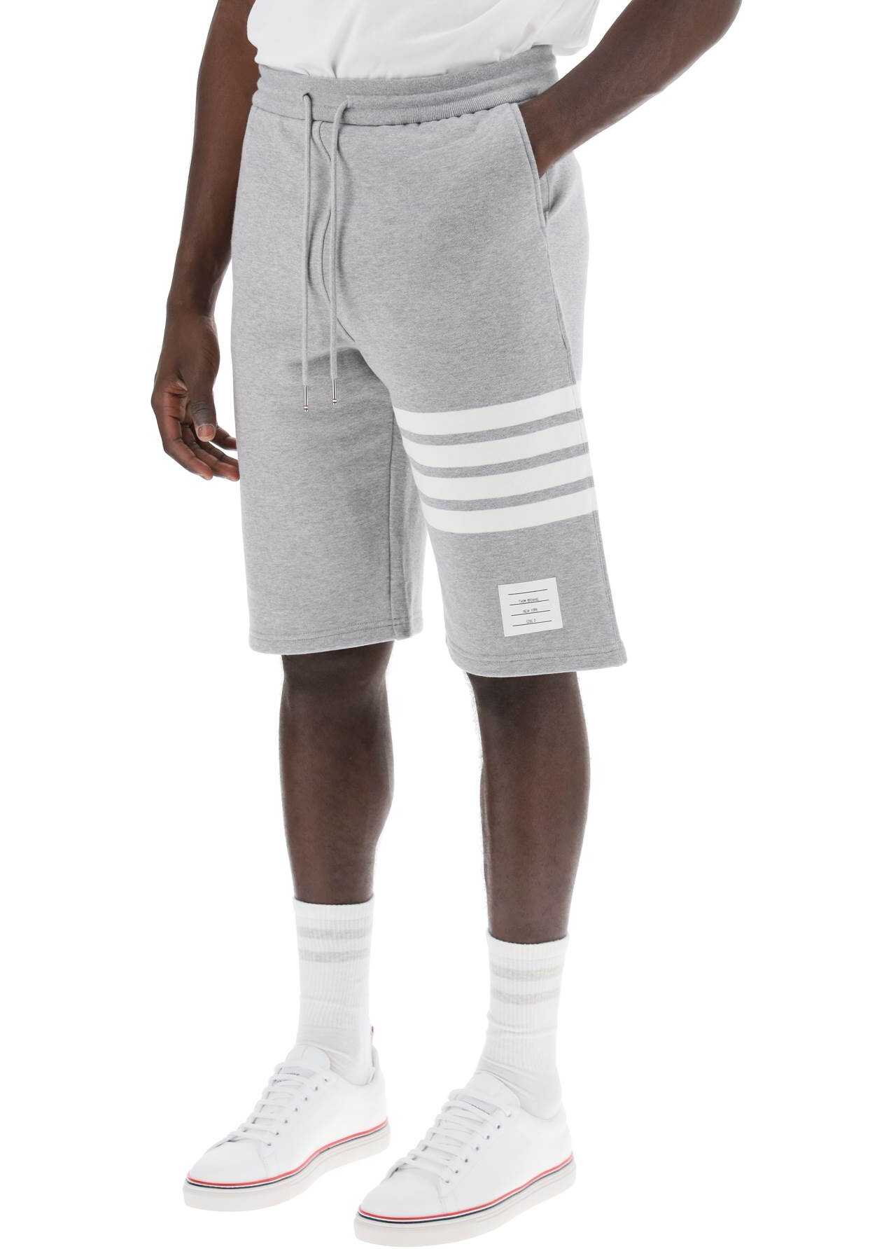 These Thom Browne sweat shorts are crafted from soft cotton French terry to a regular fit. Decorated with a 4-Bar motif and a Name Tag patch at the left thigh, this classic pull-on design features an elasticated drawstring waist, side slash pockets and a back welt pocket. The hallmark RWB grosgrain loop tab at the back signs this style. The model is 187 cm tall and wears size 2 Thom Browne.