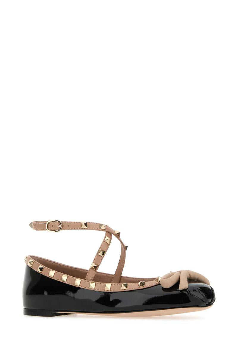 Black leather Rockstud ballerinas