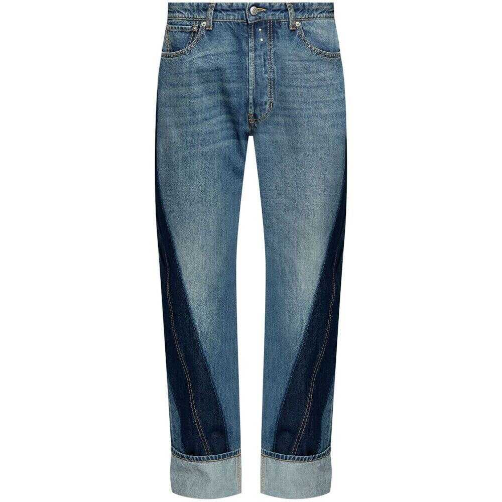 Indigo blue cotton washed denim whiskering effect contrast stitching twisted side stripe detailing rivet detailing belt loops concealed fly and button fastening straight leg classic five pockets turn-up cuffs we've partnered with good on you — an independent agency that rates how brands perform in relation to their impact on the planet, people and animals, with a multi-criteria rating simplified to a five points scale. in order to be awarded our conscious label, larger brands need to score a minimum of four out of five ('good'), while smaller brands must score at least three out of five ('it's a start'). this item comes from a brand rated three out of five ('it's a start') by good on you at the time it was added on farfetch. please note, this is a brand-level rating and does not guarantee that this product is made with conscious materials. learn more about what makes a product conscious on our conscious criteria page