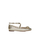 Valentino Garavani’s Rockstud ballet flats in platinum-tone laminated leather featuring a rounded toe, padded bow, signature tone-on-tone studs along the edges and ankle strap, leather lining, insole and flat sole.