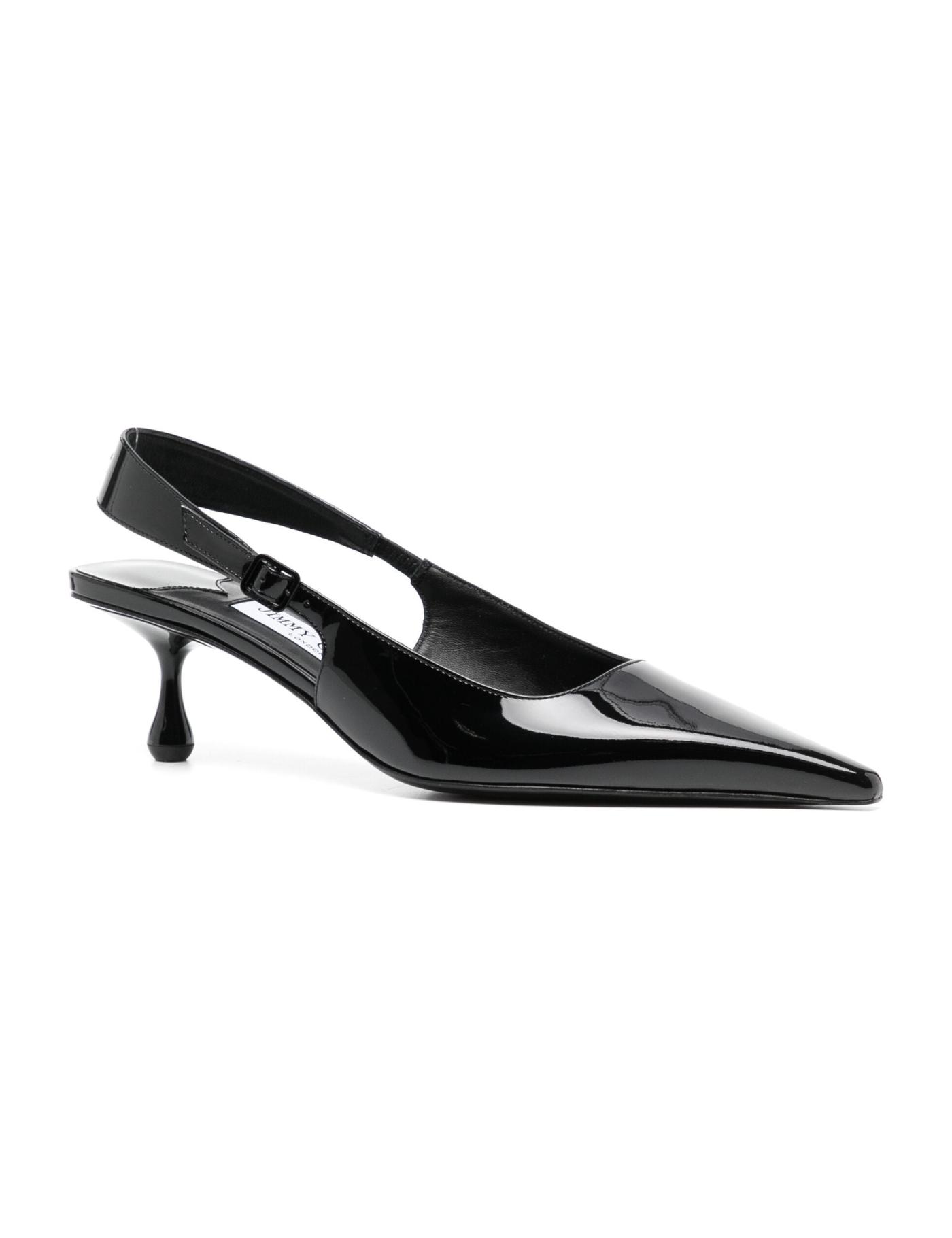 Jimmy Choo's black patent Amel pumps are a study in lines and shape; they combine droplet heels with square vamps and sleek pointed toes. The elasticated slingback strap can be adjusted to the ideal fit.