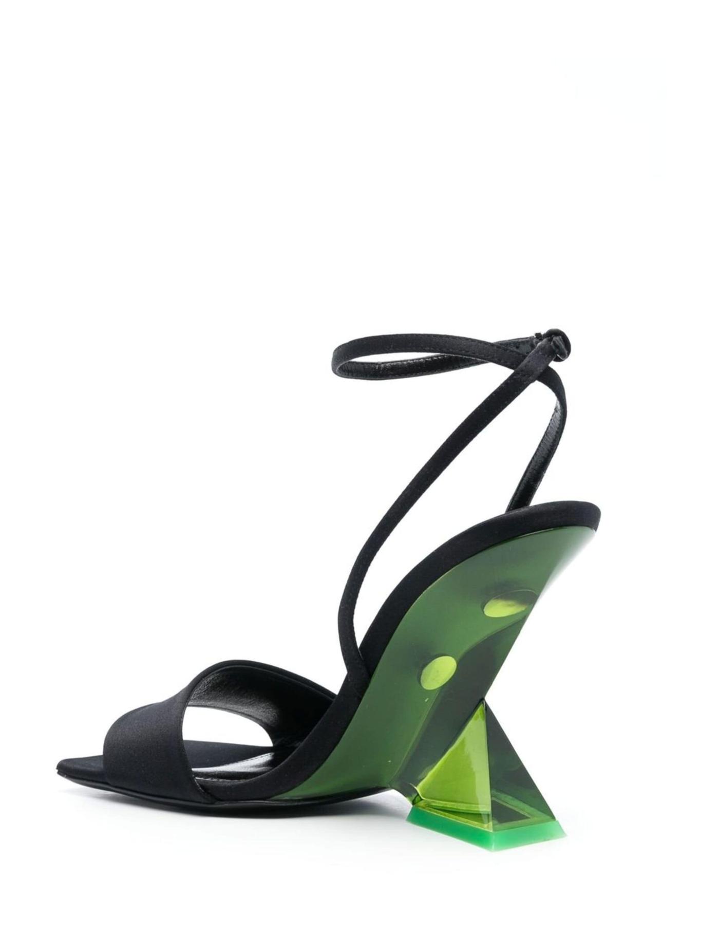The Cheope sandals from The Attico exude modernity with their cutting-edge silhouette. Presented here in a black and green hue, they feature a side buckle fastening and are set upon a 105mm tapered heel.
