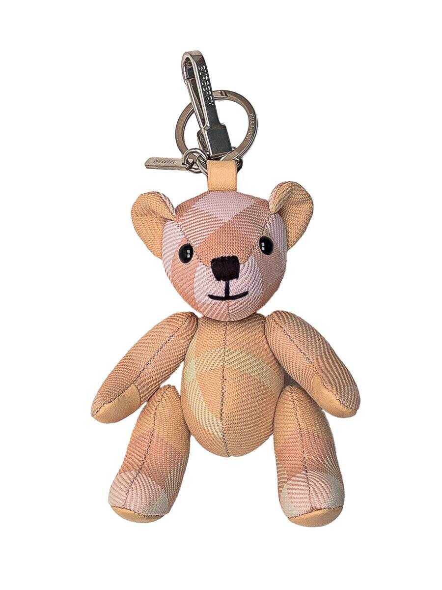 Pink bear charm with Burberry Check all-over pattern. Metal hook with logo. Width:8 Height:14