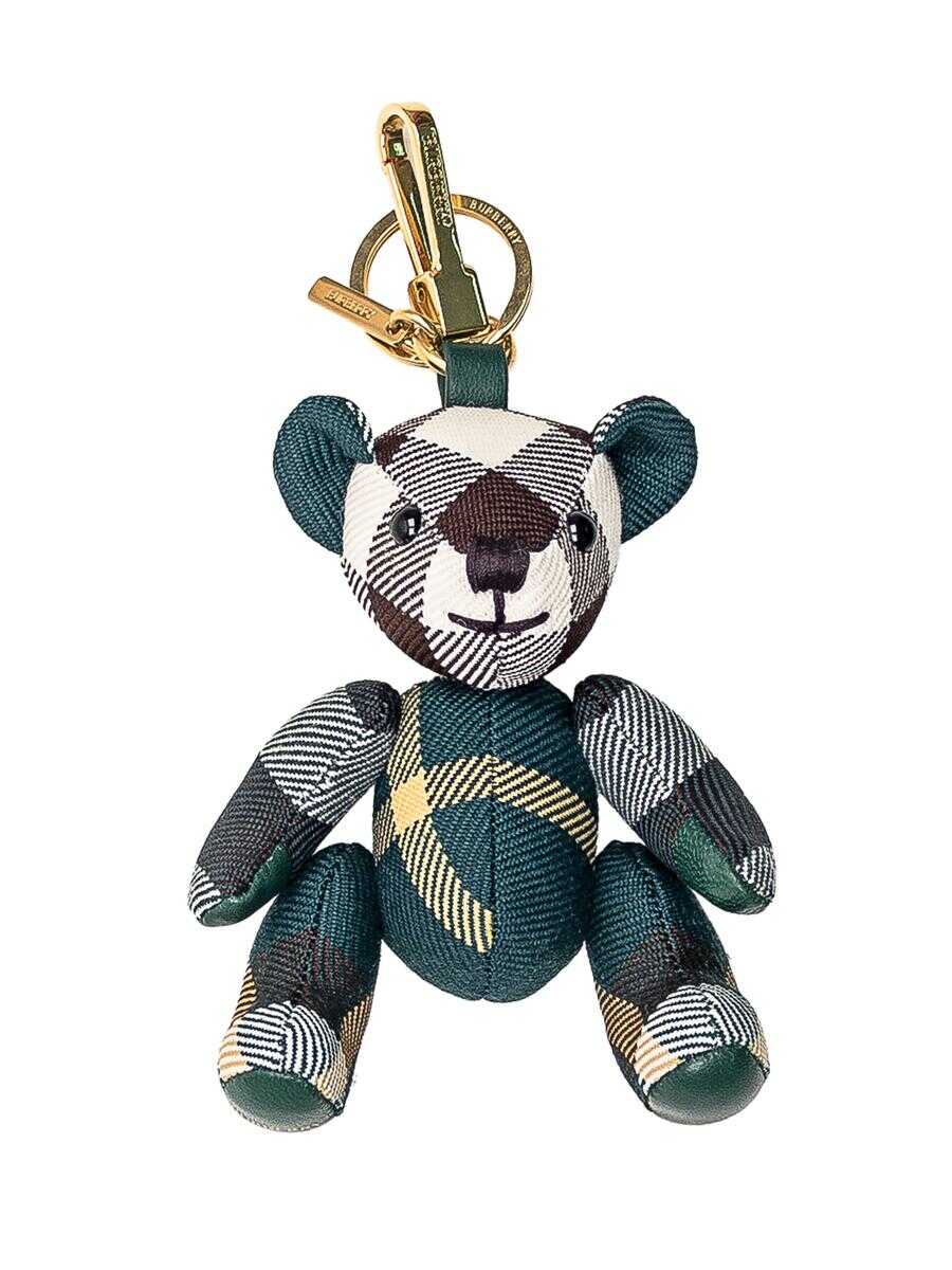 Bear charm with Burberry Check all-over pattern. Gold metal hook with logo. Width:8 Height:14