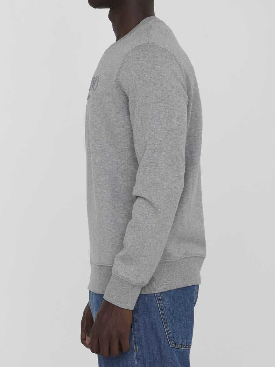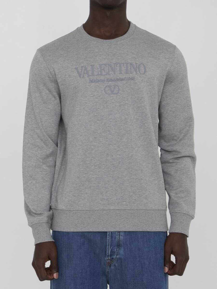 Long-sleeved crewneck sweatshirt in grey cotton with tone-on-tone Valentino print on the front. Ribbed elasticated collar, cuffs and hem. Regular fit.