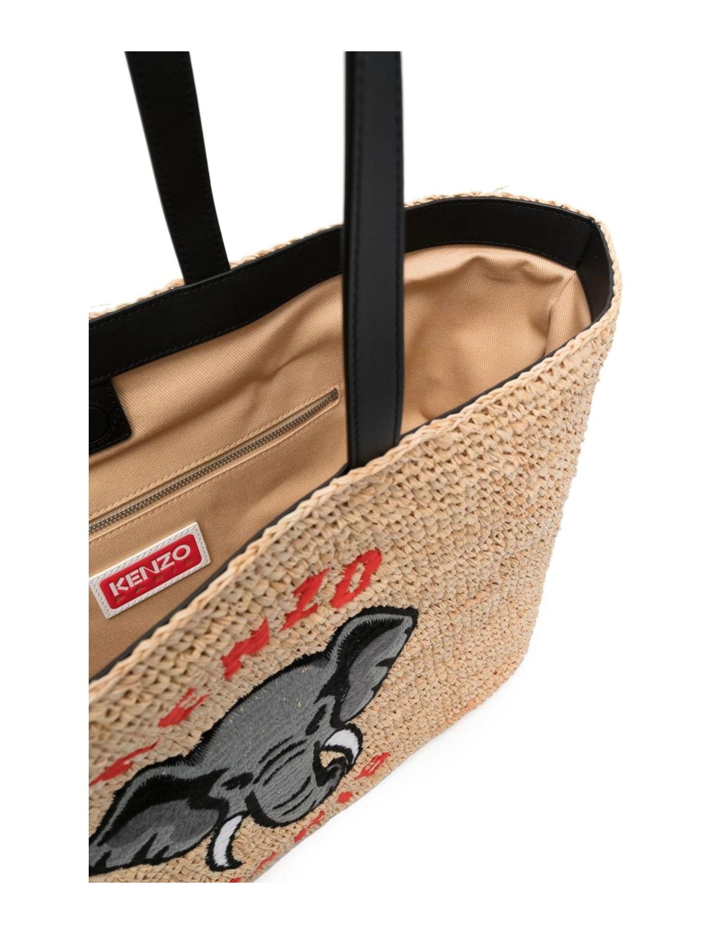 Kenzo's signature Elephant motif takes focus in this large tote bag. Seen across the French brand's collections, the animal gives a playful finish to the item's woven raffia construction.