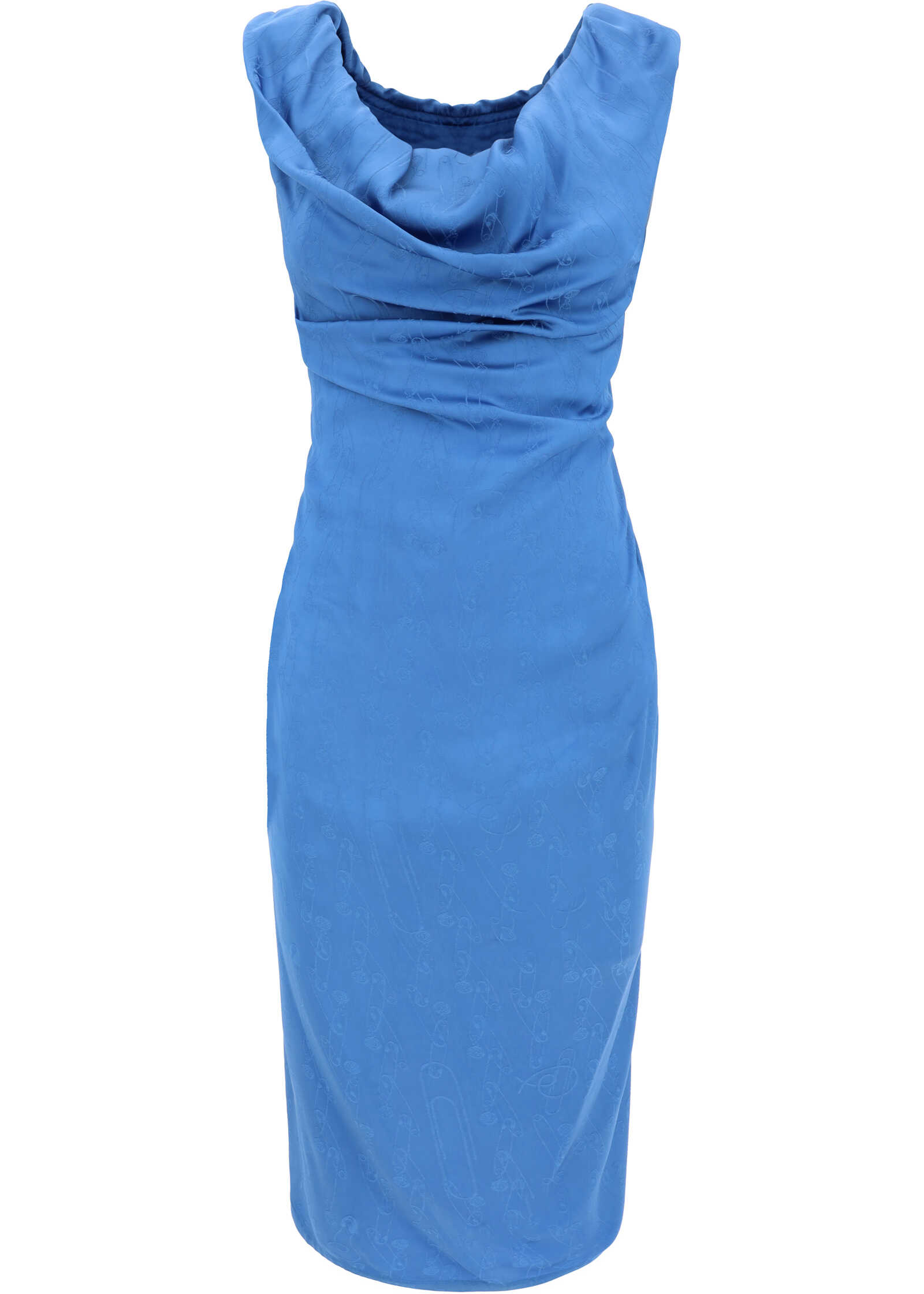 Ginnie Pencil Dress by Vivienne Westwood, sleeveless design, soft front neckline, zipper closure on side panel, back slit, ruffle applique detail on side panel.