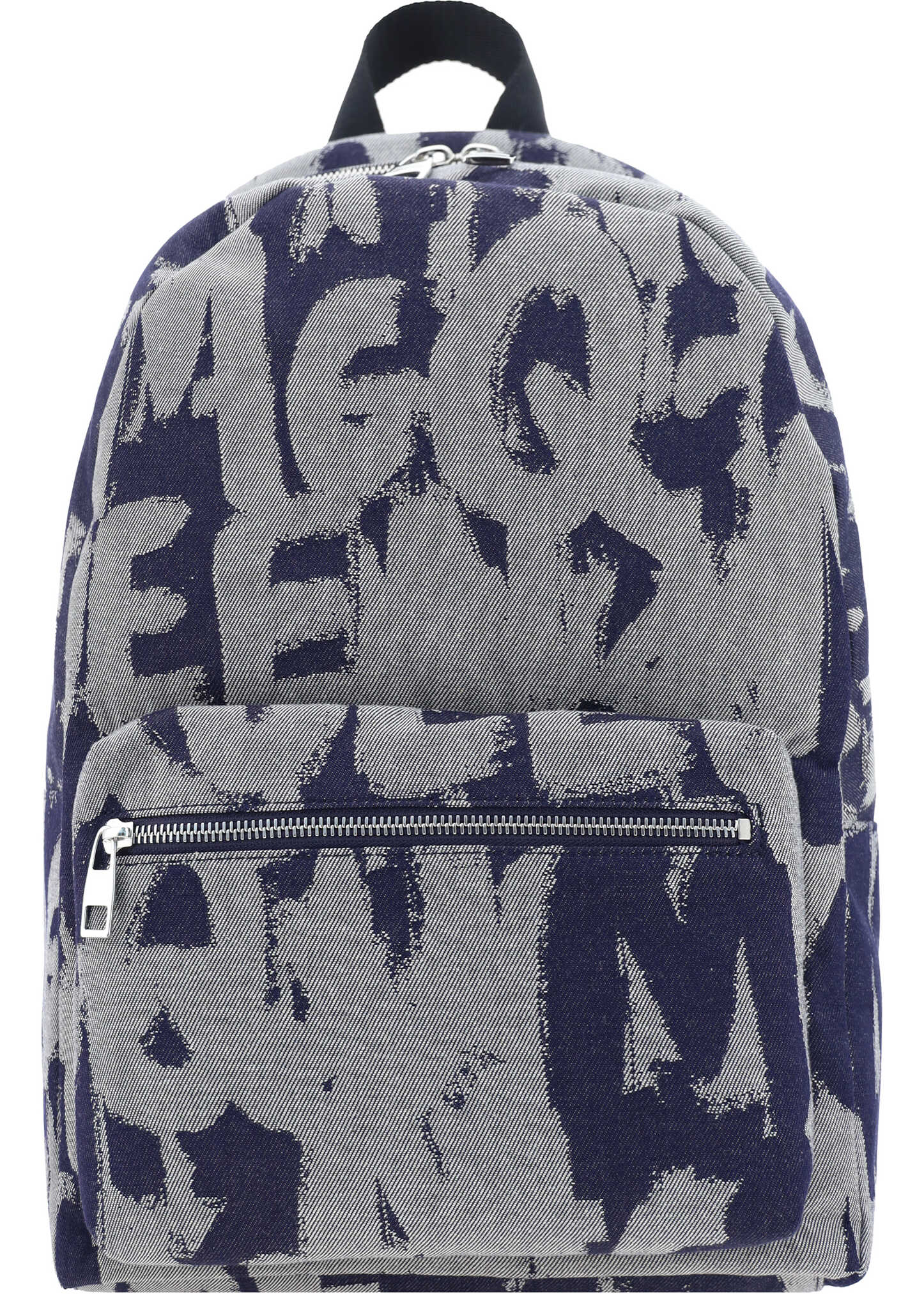 Metropolitan Backpack by Alexander McQueen, top zipper closure, front zipper pocket, brand's iconic all-over repeated Graffiti monogram, top handle, adjustable shoulder straps.