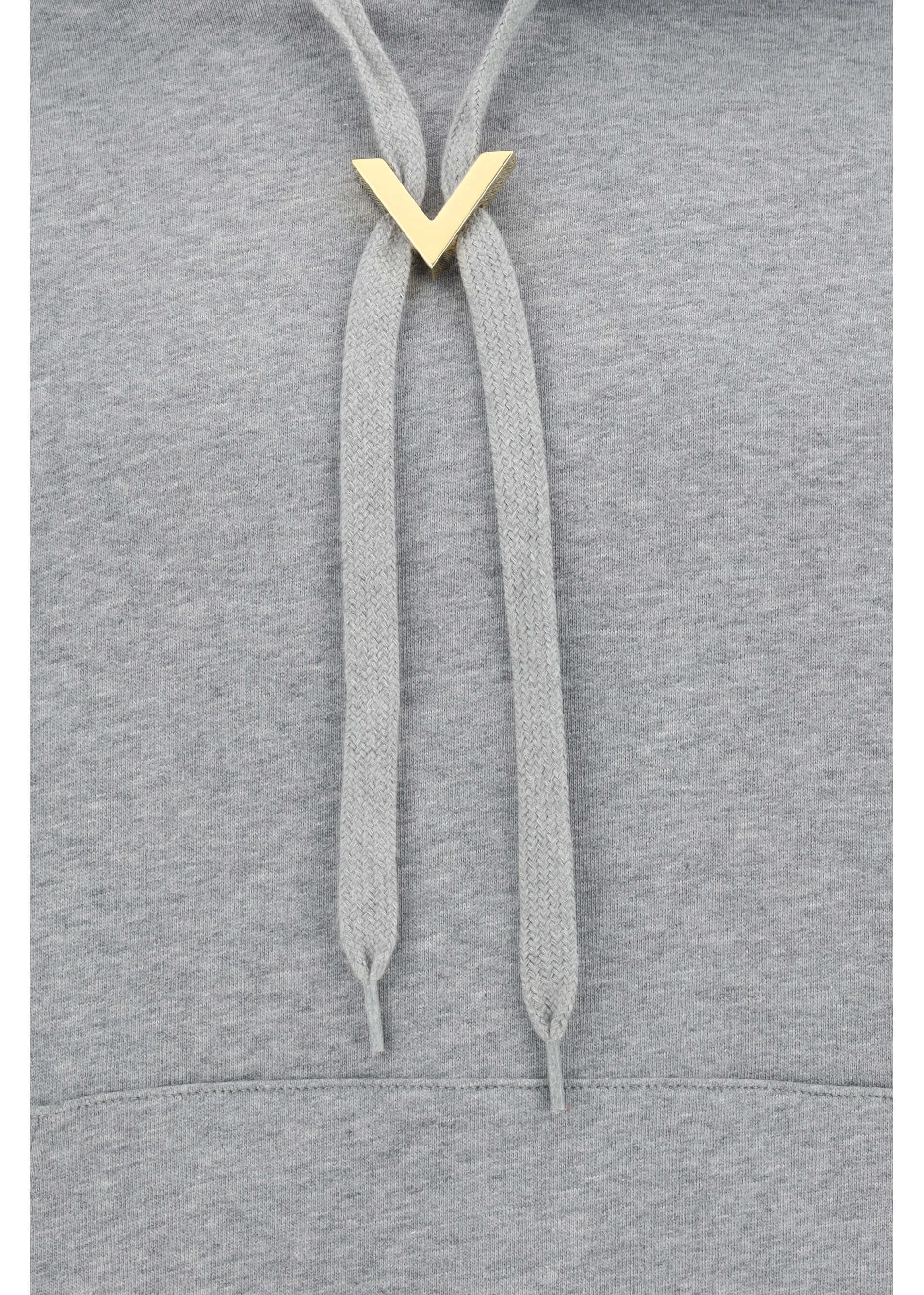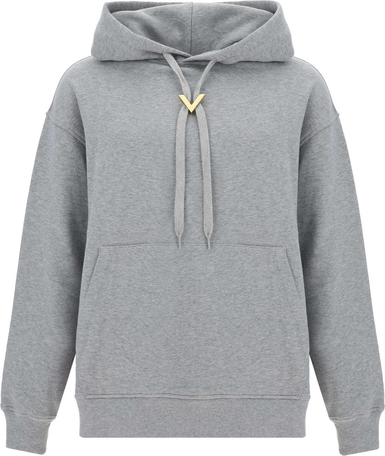 Cotton Hoodie by Valentino, features adjustable drawstring hood with three-dimensional VLogo plaque detail, ribbed cuffs, ribbed hem, plush interior, front kangaroo pocket, regular fit.