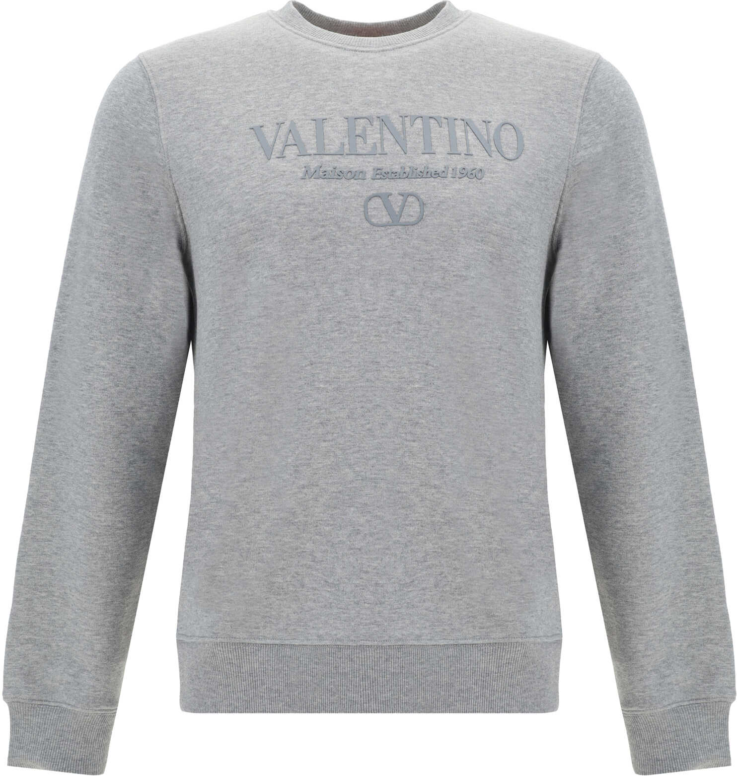 Cotton Sweatshirt by Valentino, featuring ribbed crew neck, ribbed cuffs, ribbed hem, contrasting iconic brand monogram at front, monochrome design, regular fit.