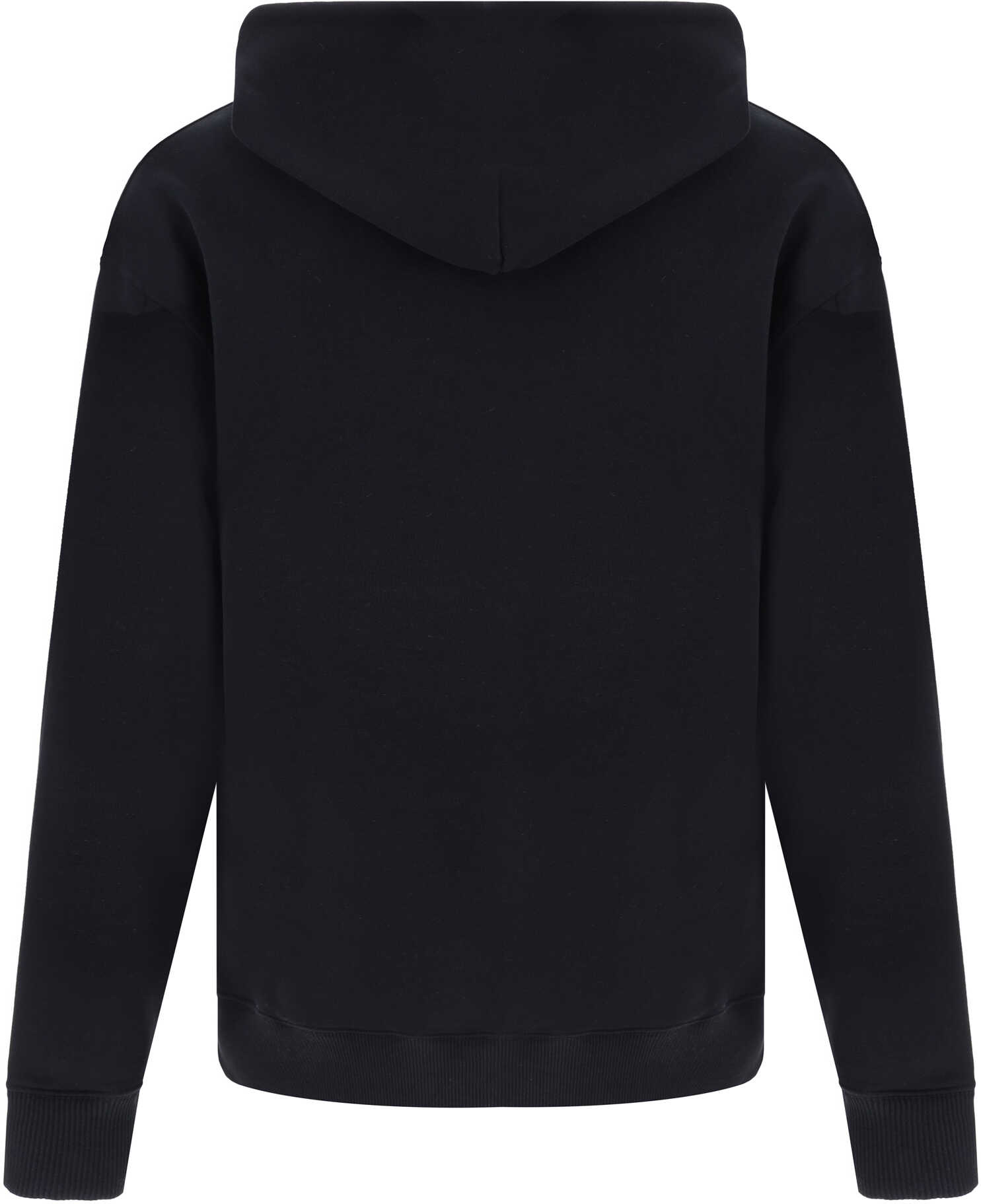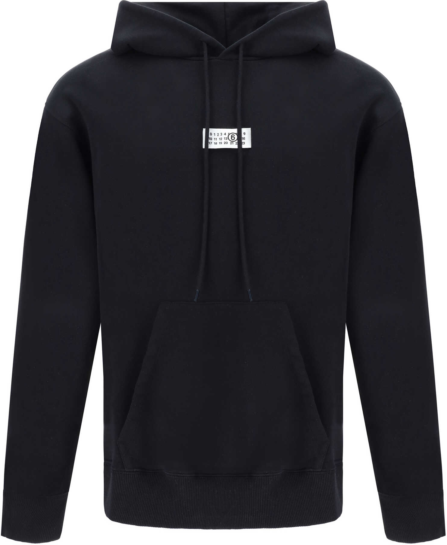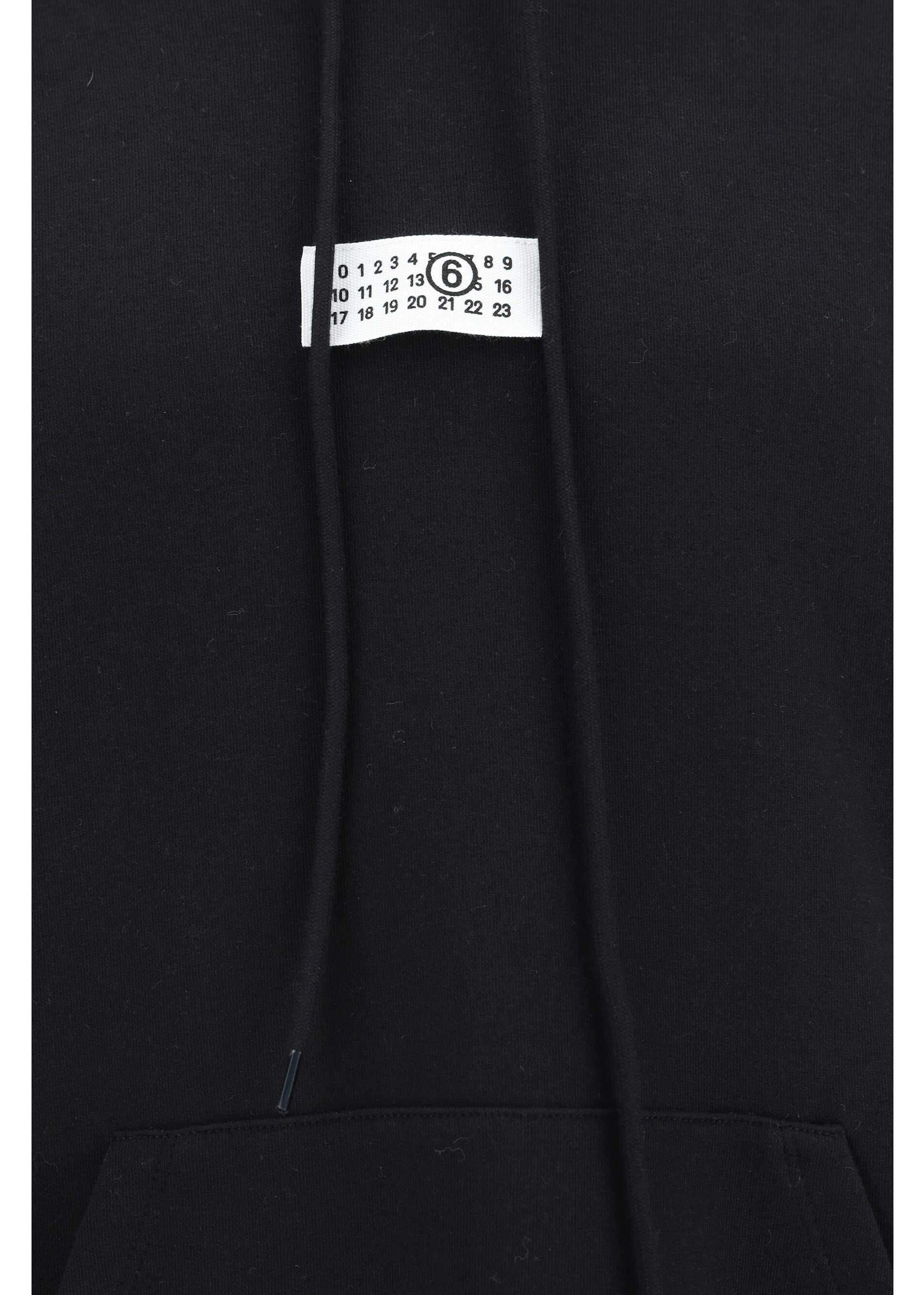 Cotton Hoodie by MM6, hood with adjustable drawstring, ribbed cuffs, ribbed hem, front kangaroo pocket, contrasting applied iconic brand logo patch on front, regular fit.