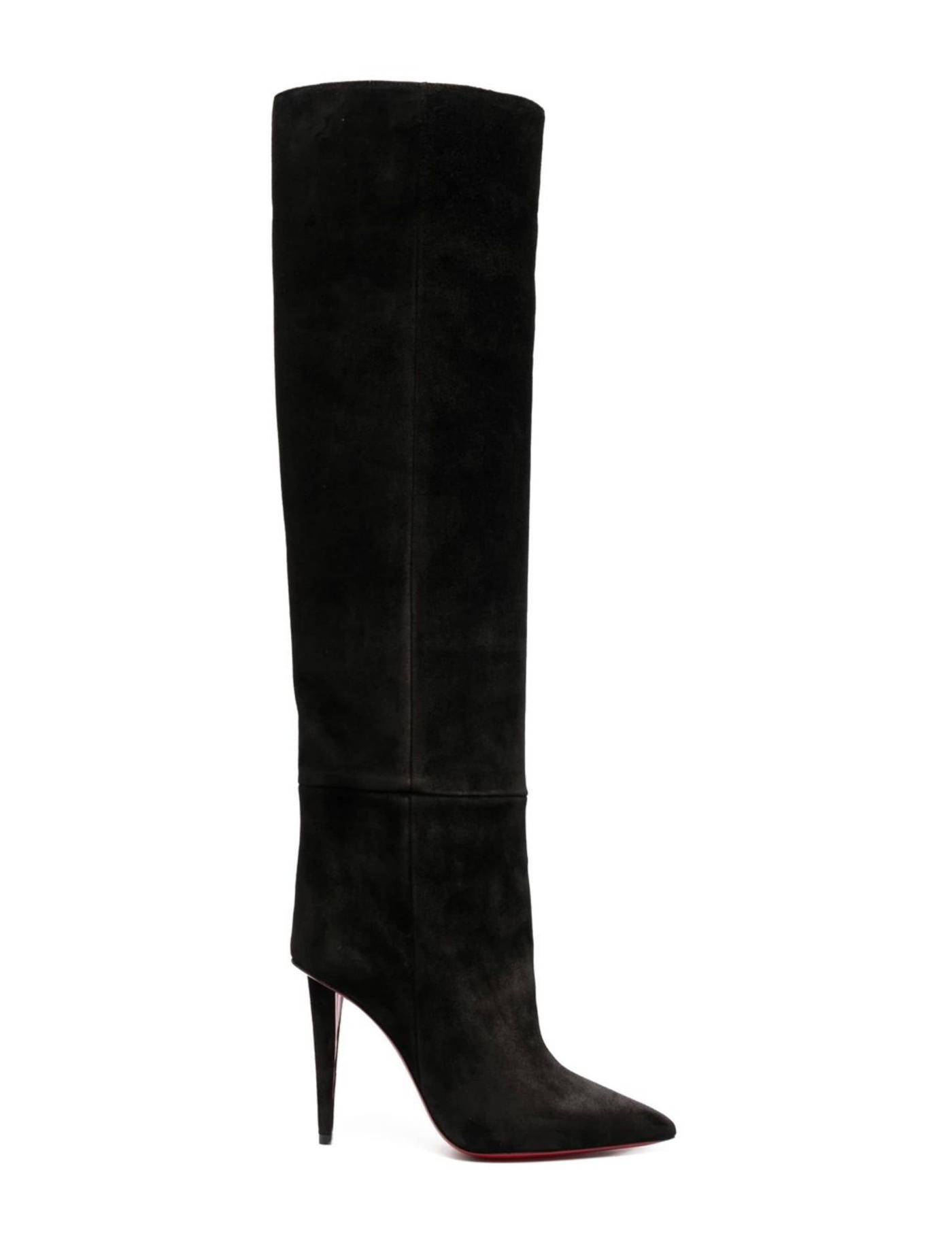 Showcasing Christian Louboutin's creativity, the Astrilarge Botta boot has a 100 mm architectural stiletto heel built directly into the sole. Crafted in black velours, this knee-length design is completed with a sophisticated pointed toe.