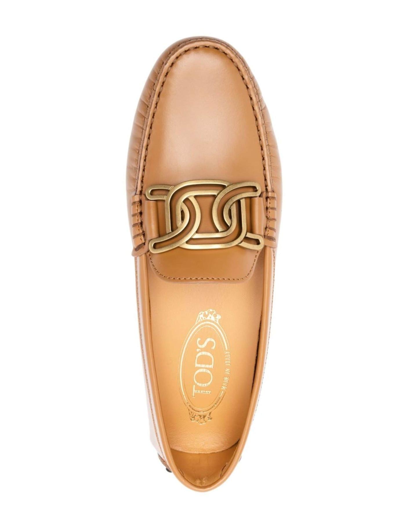 Tod’s is renowned for its craftsmanship and quality which it has been perfecting for over one hundred years. Presented in a light brown hue, these loafers feature an eye-catching chain-link horsebit logo detail that complements the classic silhouette.