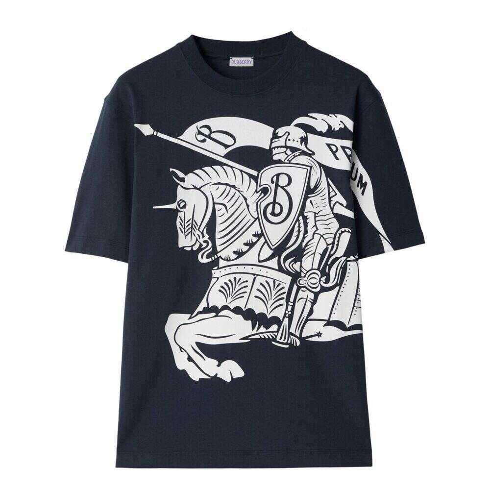 Midnight blue cotton jersey texture signature equestrian knight motif crew neck drop shoulder short sleeves straight hem we've partnered with good on you — an independent agency that rates how brands perform in relation to their impact on the planet, people and animals, with a multi-criteria rating simplified to a five points scale. in order to be awarded our conscious label, larger brands need to score a minimum of four out of five ('good'), while smaller brands must score at least three out of five ('it's a start'). this item comes from a brand rated three out of five ('it's a start') by good on you at the time it was added on farfetch. please note, this is a brand-level rating and does not guarantee that this product is made with conscious materials. learn more about what makes a product conscious on our conscious criteria page