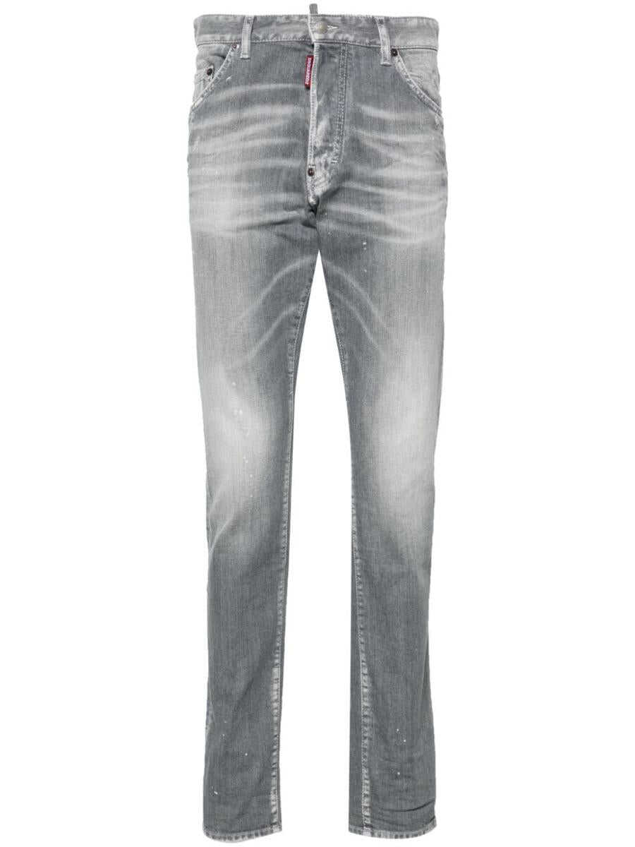 Grey stretch cotton jeans from Dsquared2. Slim fit. Faded effect. Classic five pockets. Belt loops. Zip and button closure. Iconic red label with white logo on the front. - Dsquared2 - grey - stretch cotton - faded effect - slim fit - men's