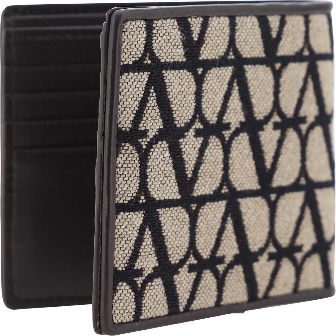 Toile Iconographe Wallet by Valentino Garavani, jacquard fabric design with iconic coated print on front and back, billfold design, interior card slot, bill compartment.