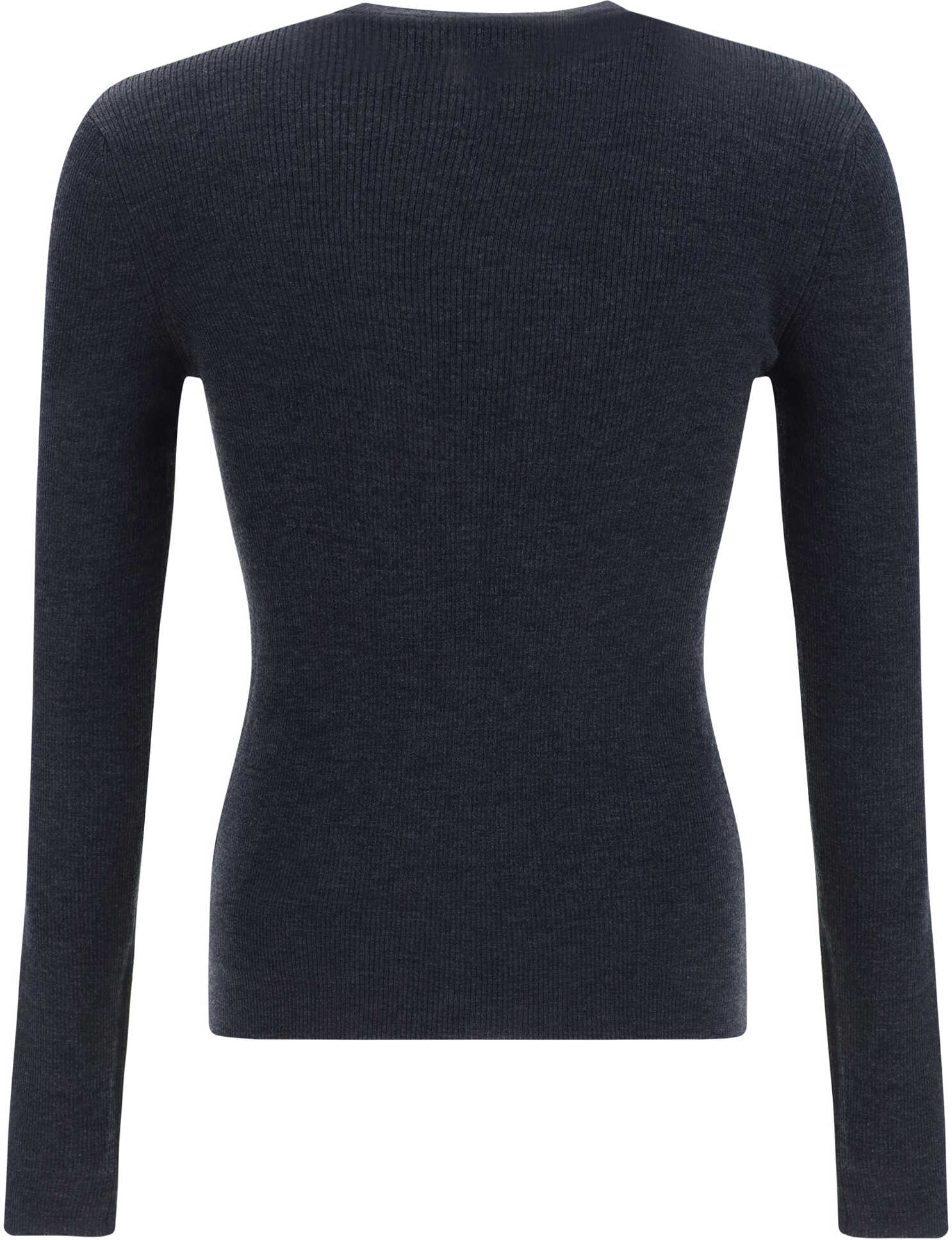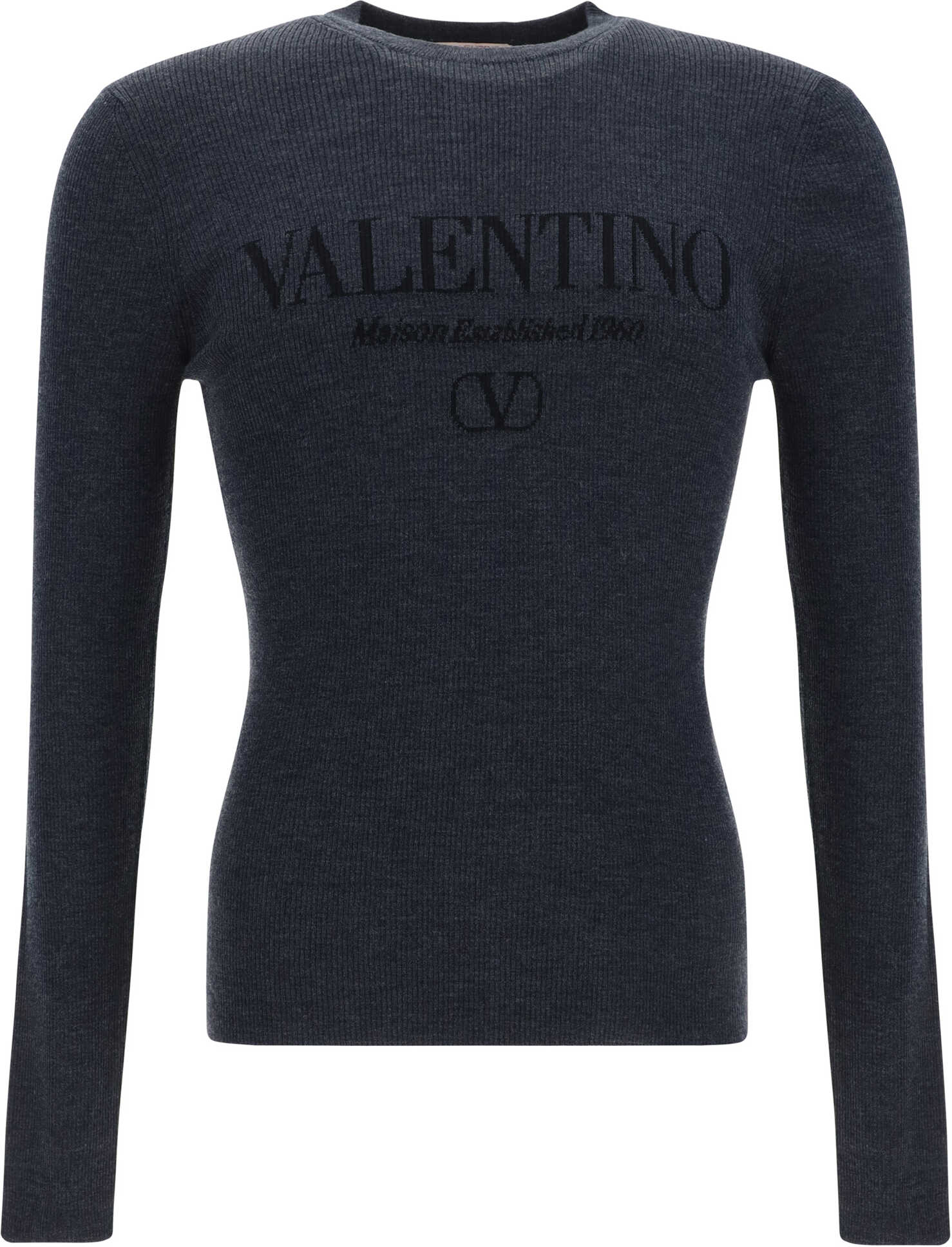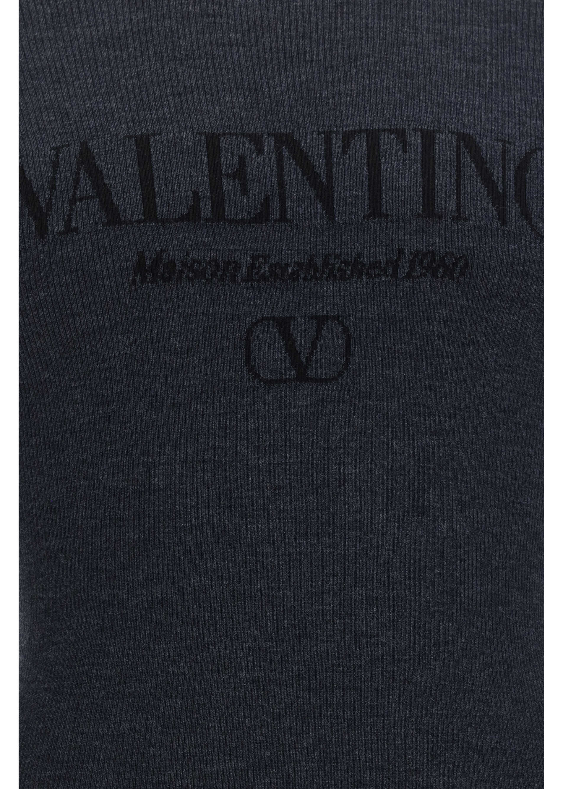 Virgin Wool Sweater by Valentino, ribbed crew neck, contrasting iconic brand monogram at front, monochrome pattern, fitted fit.