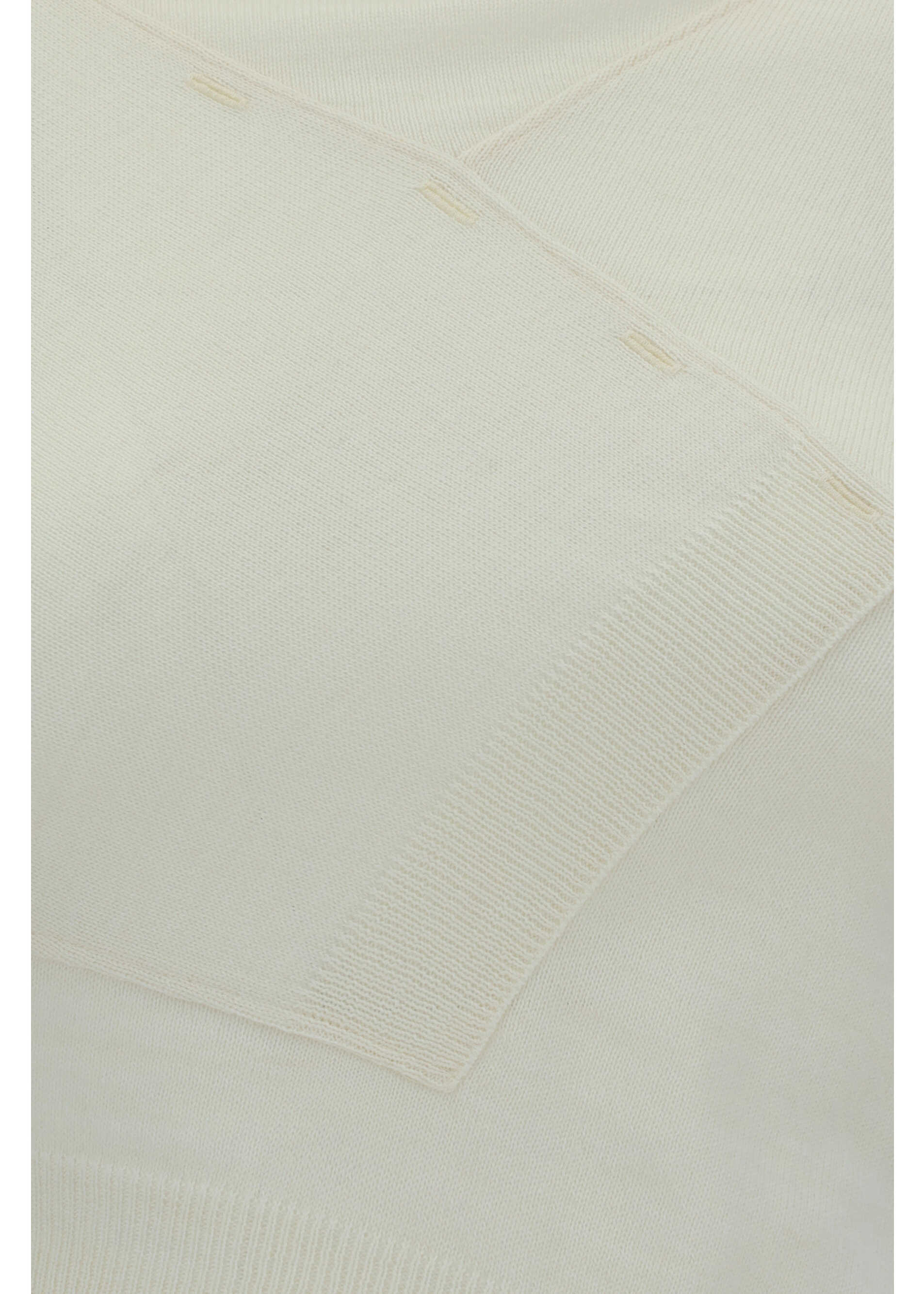 Virgin Wool Sweater by MM6, featuring a turn-up turtleneck, asymmetrical paneled design at front, ribbed cuffs, asymmetrical hem at front panel, monochrome pattern, slim fit.