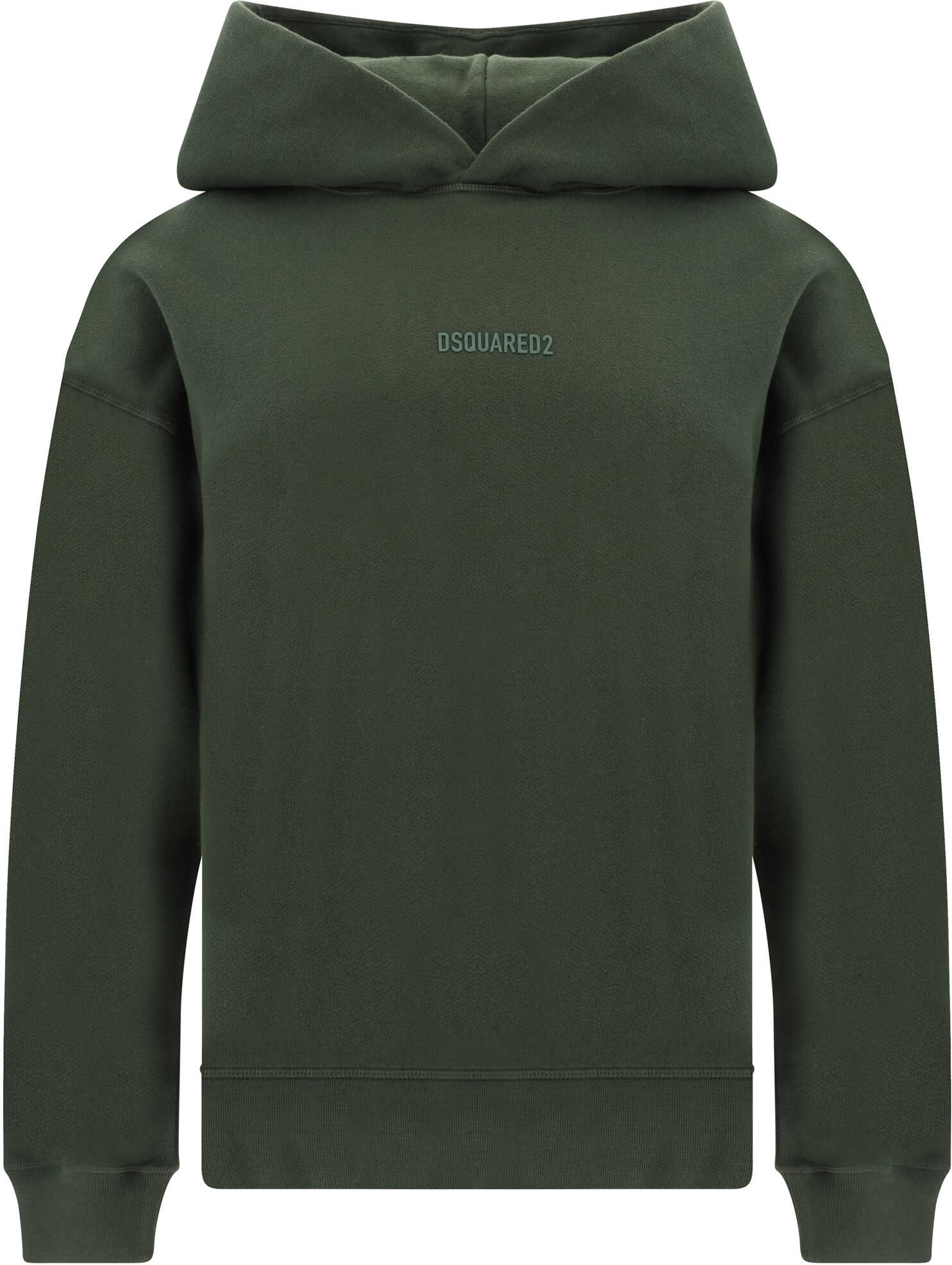 Cotton Hoodie by Dsquared2, features hood with adjustable drawstring, ribbed cuffs, ribbed hem, iconic brand monogram printed in contrast on front, plush interior, regular fit.
