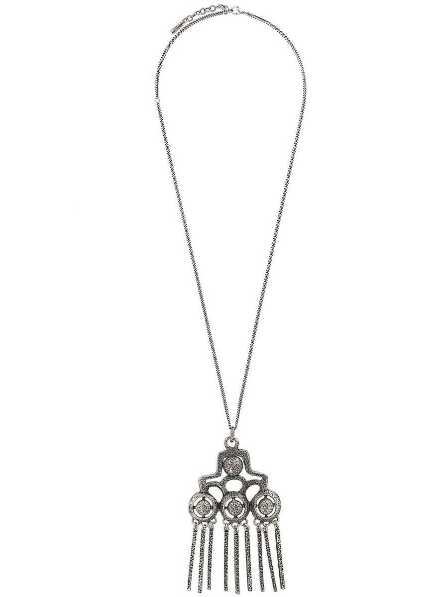 Silver-tone metal oversized talisman charm necklace from Saint Laurent featuring a lobster clasp closure.