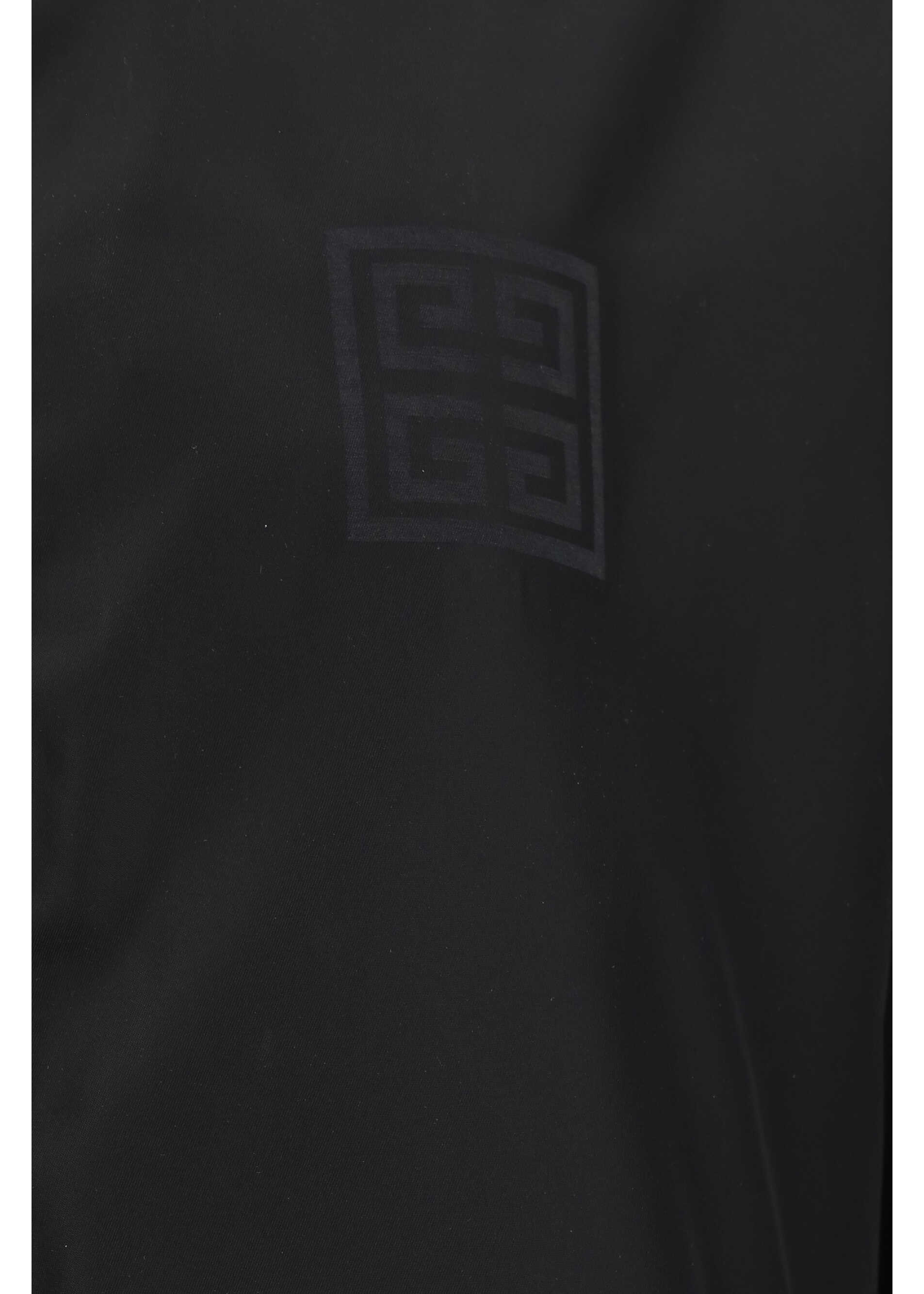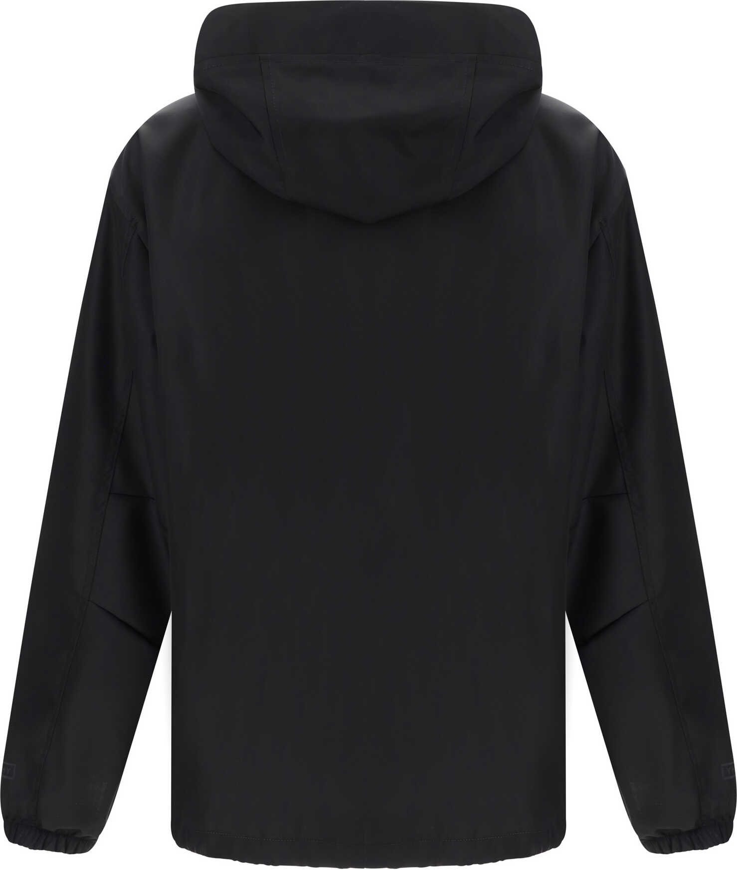 Hooded Jacket by Givenchy, front zipper closure, adjustable drawstring hood, two side welt pockets, iconic brand logo on front, elasticized cuffs, elasticized hem, monochrome pattern, oversize fit.