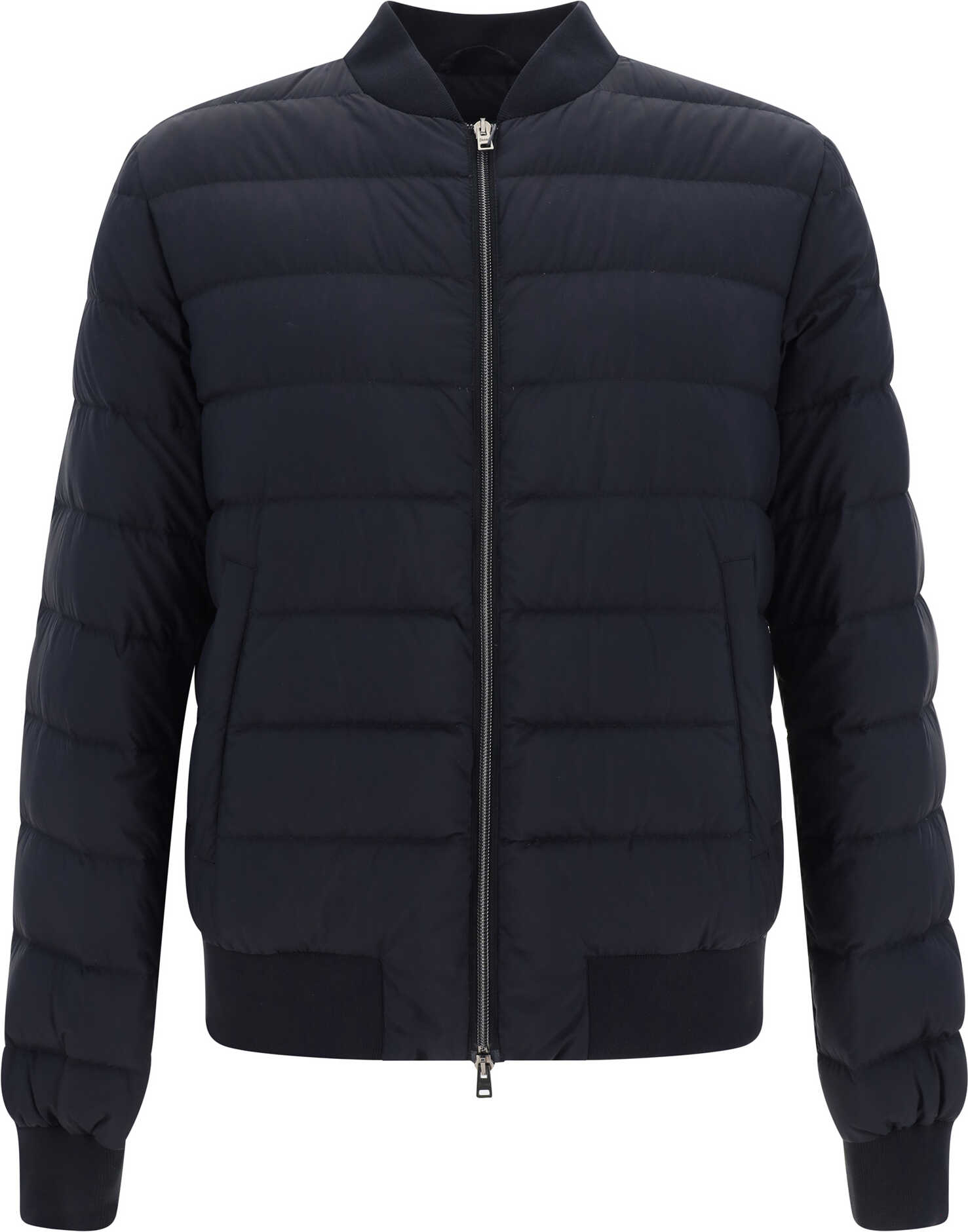 Down Jacket by Herno, ribbed collar, front closure by double-slider zipper, two welt pockets with side snap buttons, elastic ribbed cuffs, ribbed hem, all-over quilted and padded design, monochrome pattern, regular fit.