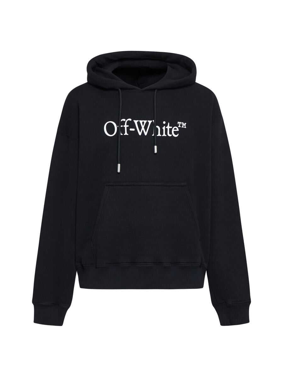 Off-White’s black cotton skater-fit hoodie featuring a hood with adjustable drawstring, black Big Bookish logo printed on the chest, dropped shoulders, front kangaroo pocket and ribbed edges.