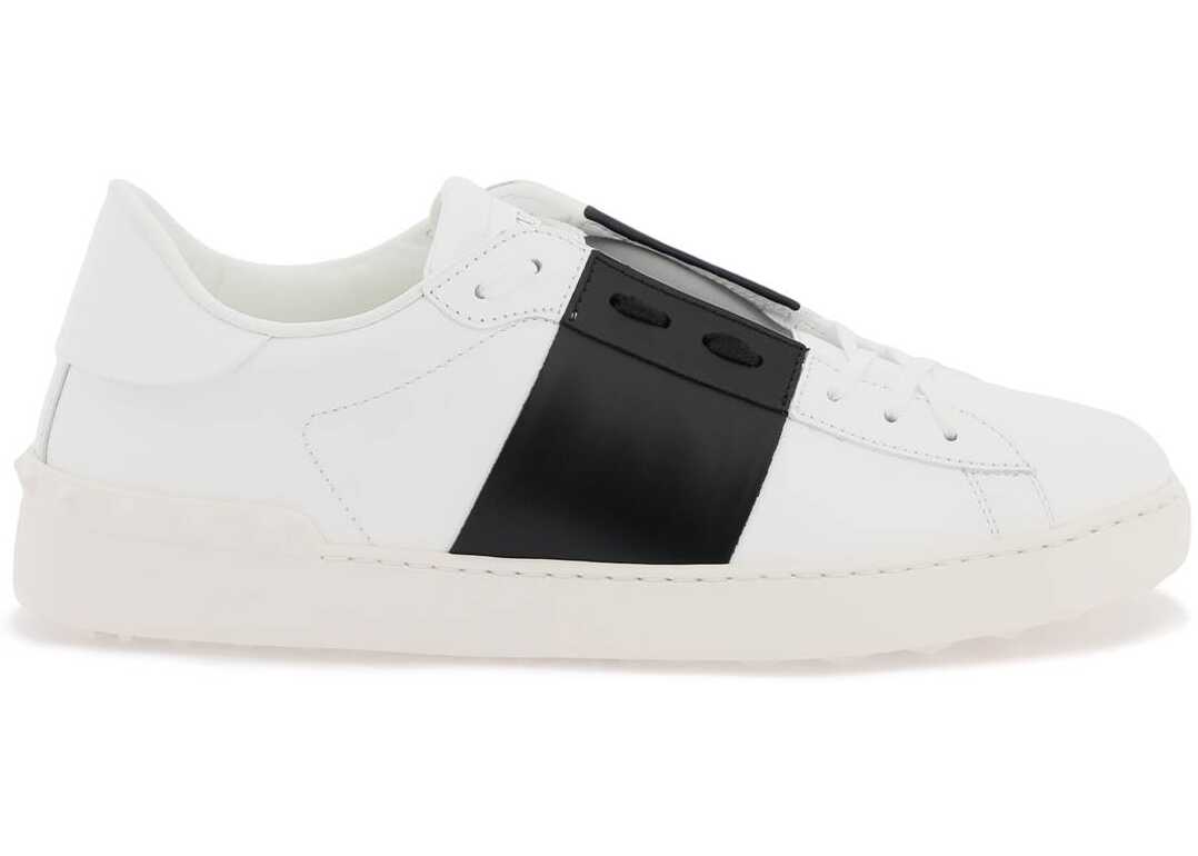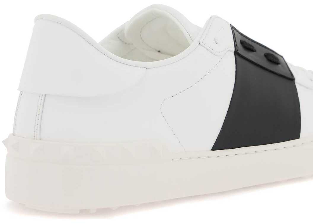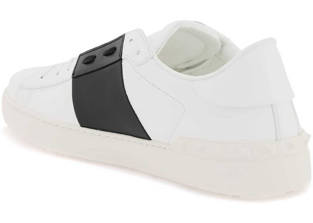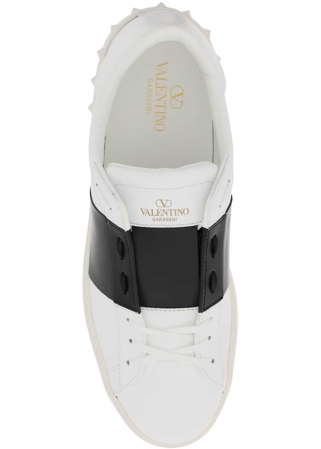 Valentino Garavani Open sneakers crafted in smooth leather with contrasting band and gold-tone logo print on the tongue. Leather lining with removable insole, rubber sole with the iconic studs embossed on the heel. Extra laces included.
