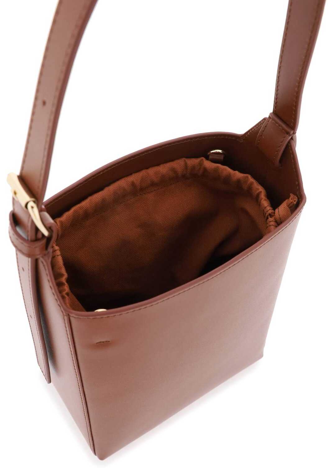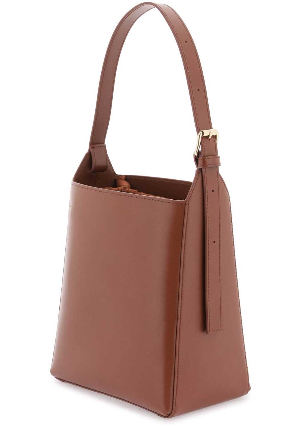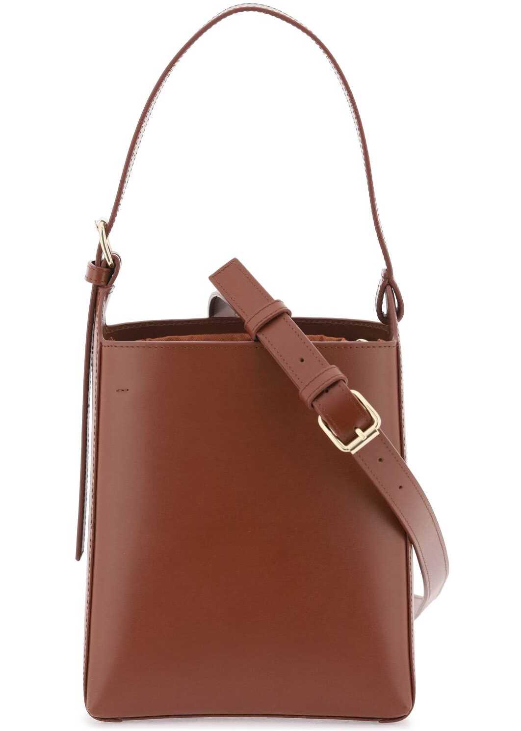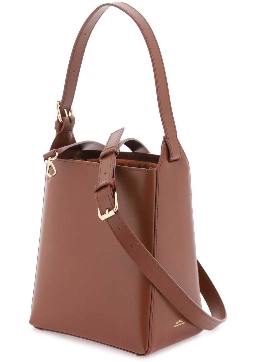 Virginie small bag by A.P.C. made of smooth leather and characterized by a trapeze shape. It features a built-in cotton pouch with a drawstring closure. It can be carried on the shoulder, thanks to the removable and adjustable shoulder strap, or by hand, thanks to the adjustable handle. Finished with gold-printed lettering logo detail on the side. Metal hardware with platinum finish.