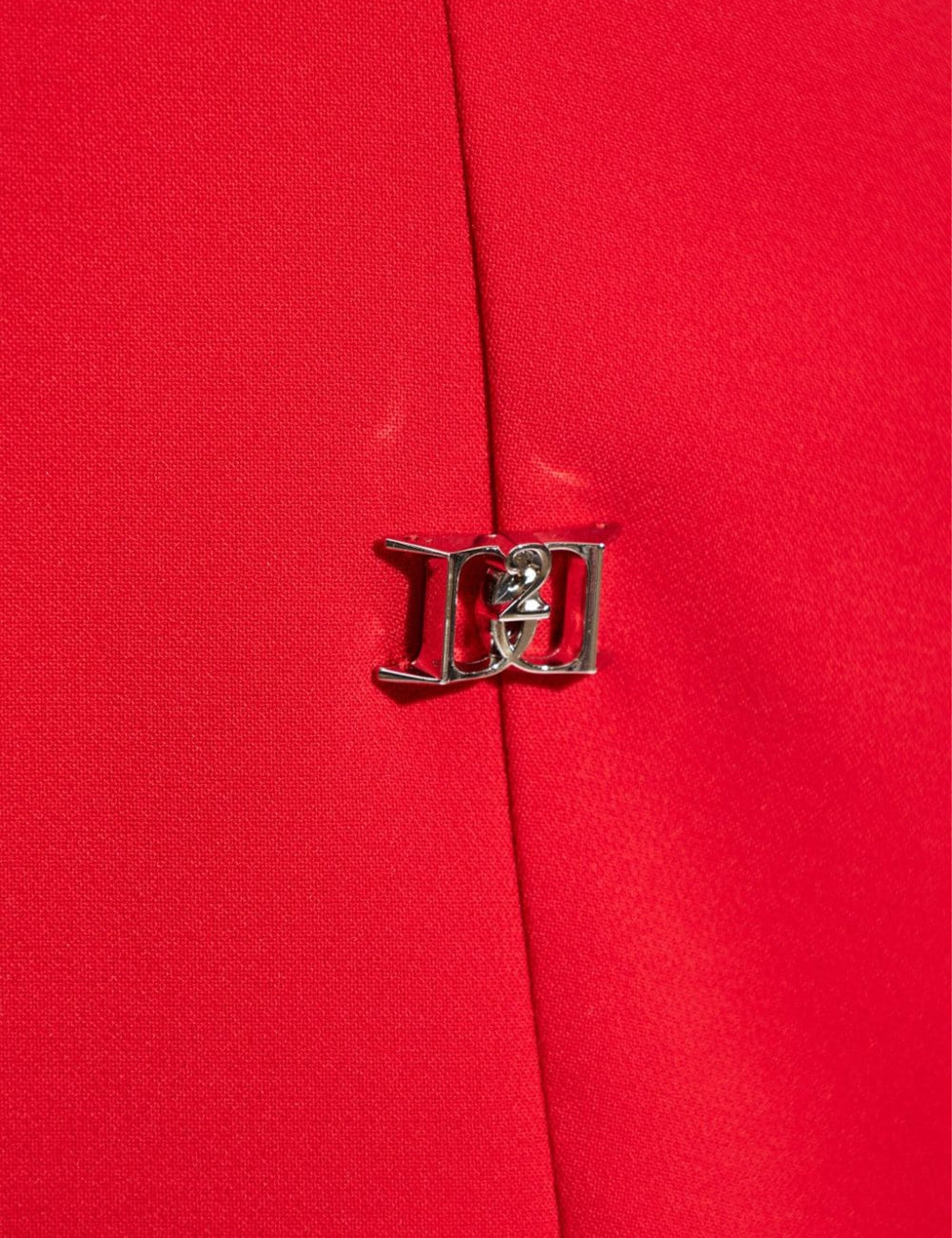 Red ruched detailing draped detailing silver-tone logo plaque round neck short sleeves rear zip fastening thigh-length