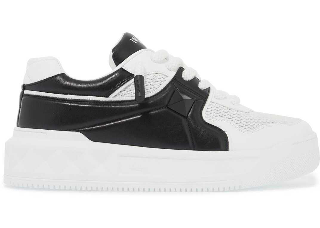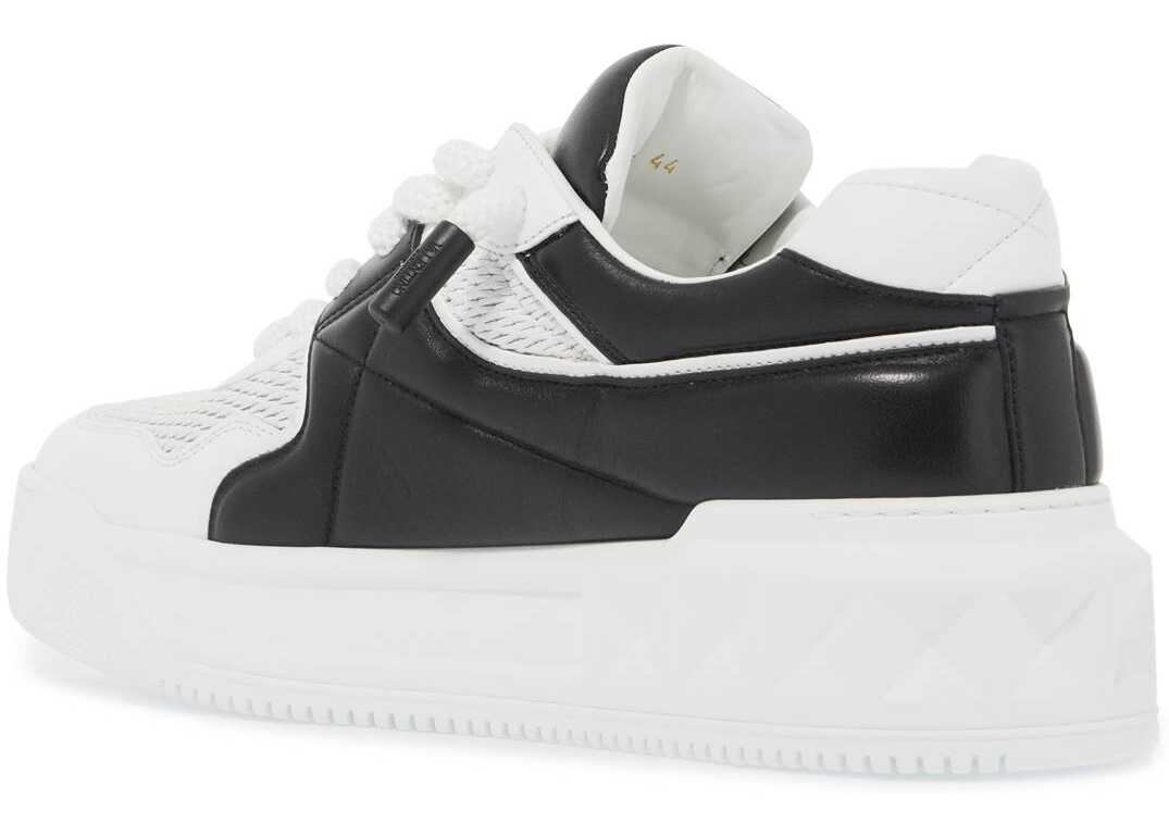 Valentino Garavani's One Stud XL low-top sneakers are made of two-tone nappa leather, padded on the sides and perforated at the toe. They feature a large tonal metal stud and a contrasting logo print on the tongue. The interior is lined with leather and has a removable insole, while the flatform rubber sole is embellished with a raised Maxi stud pattern.