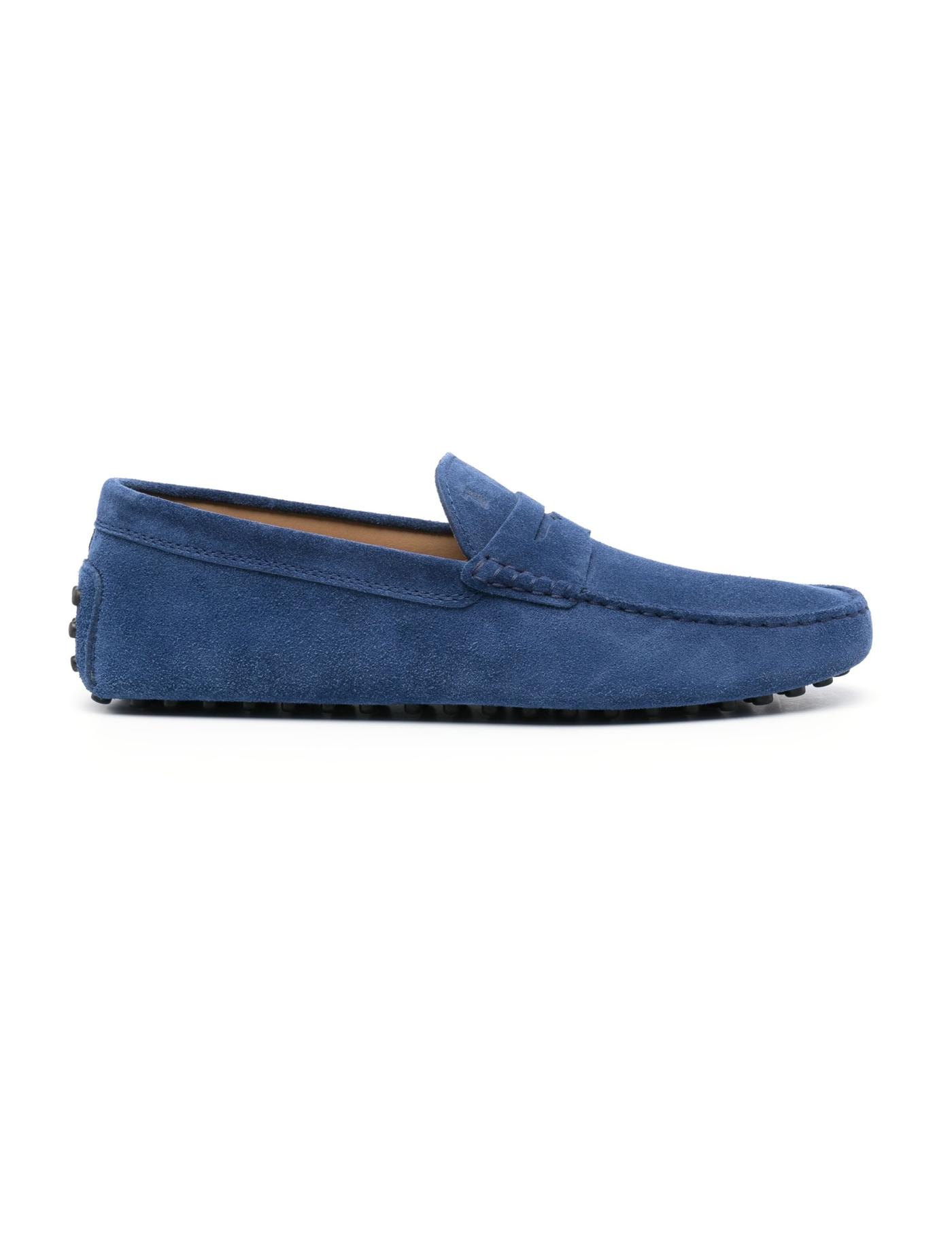 Tod's Gommino driving loafers feature a sleek design in a blue hue. This pair is crafted from suede with exposed handmade stitching and features a penny bar and a stamped Tod's monogram on top. Underneath, an iconic rubber pebble outsole finishes the look.