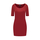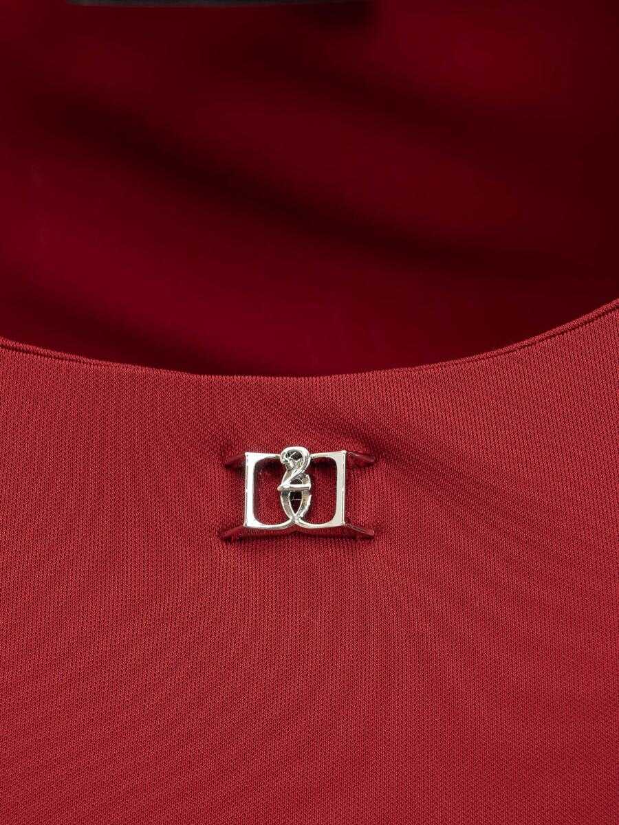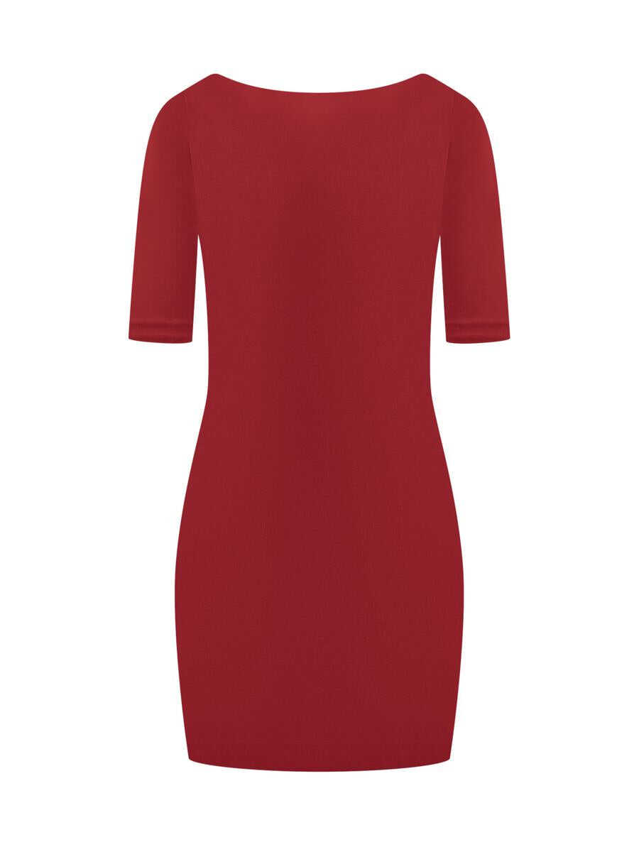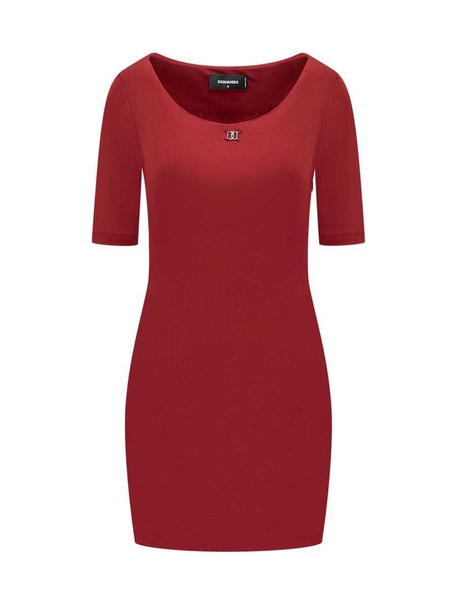 Mini dress with short sleeves. Boat neckline. Side zipper closure. Fitted fit. Metal logo patch on front.