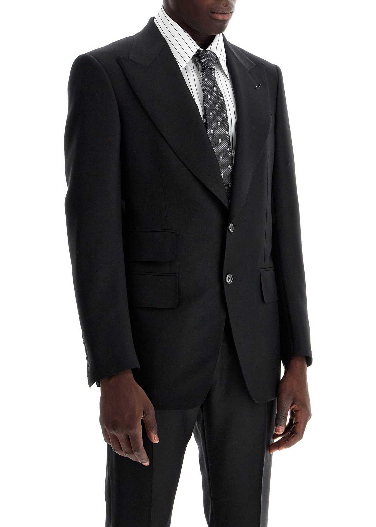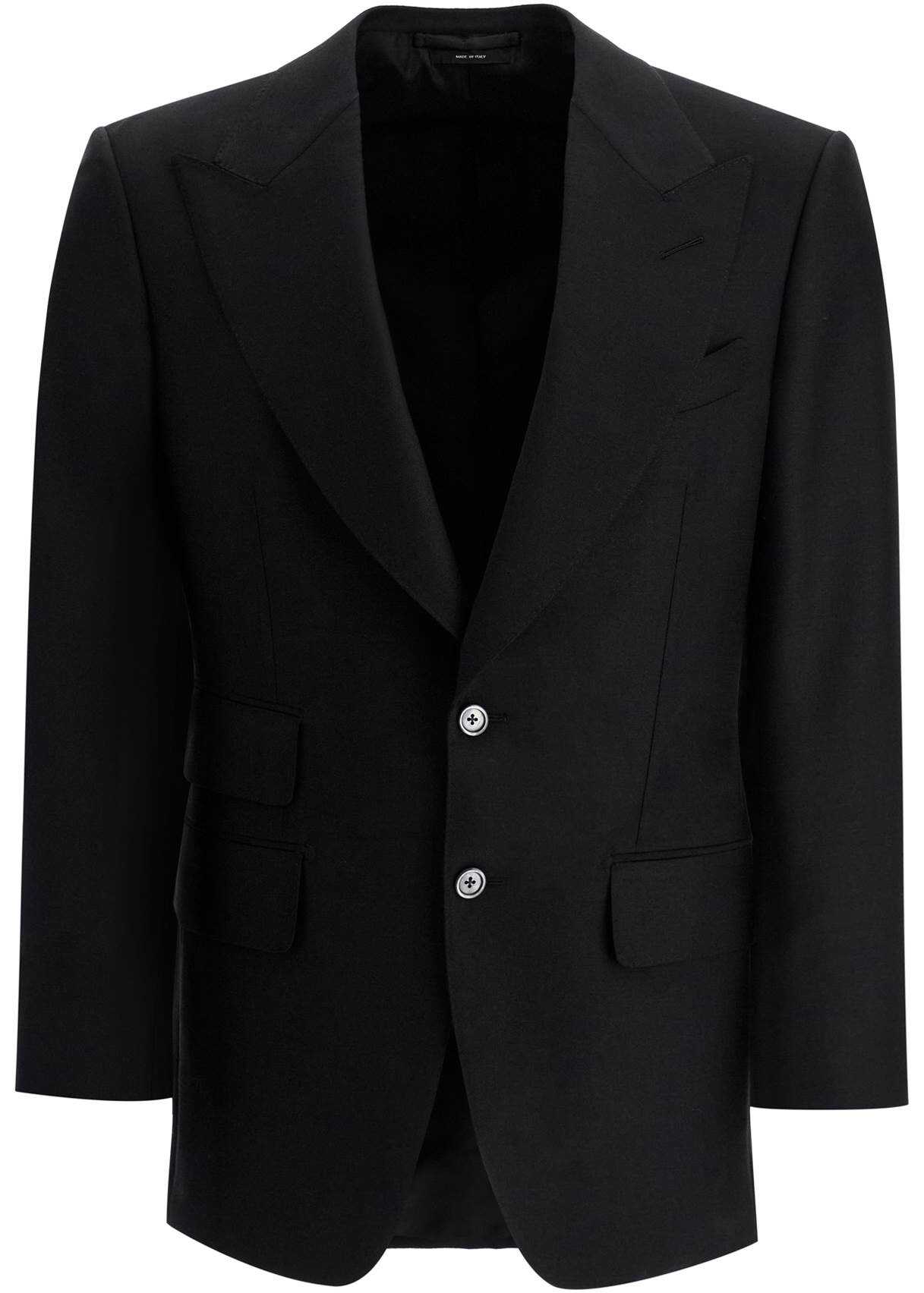 The Atticus jacket by Tom Ford is made of a blend of wool and mohair, detailed with peak lapels and a single-breasted closure with mother-of-pearl buttons. It features three front pockets with flaps, an oblique chest pocket, a back vent, and a silk-blend lining with additional pockets. The model is 187 cm tall and wears size IT 50.