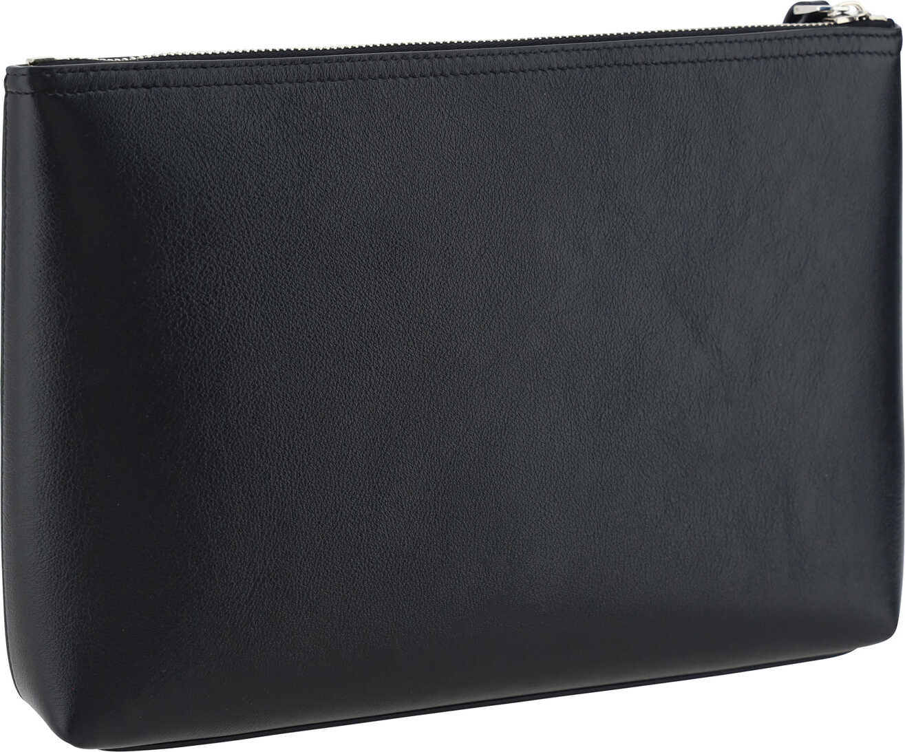 Calfskin Voyou Clutch Bag by Givenchy, zipper closure at top with leather wrist strap detail with metal buckles, iconic brand monogram printed in contrasting press-stamp on front.