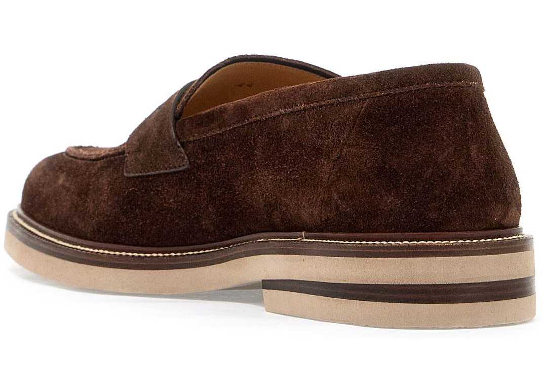 These Brunello Cucinelli loafers are made of suede leather with a smooth leather interior, stitched welt and rubber sole. They come with a cleaning brush for maintenance.