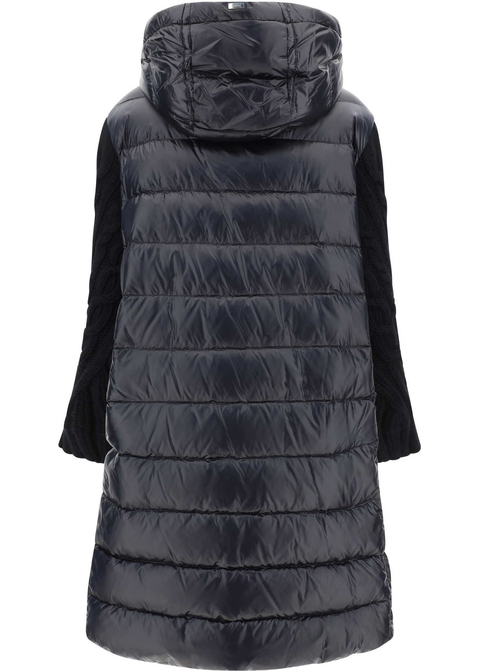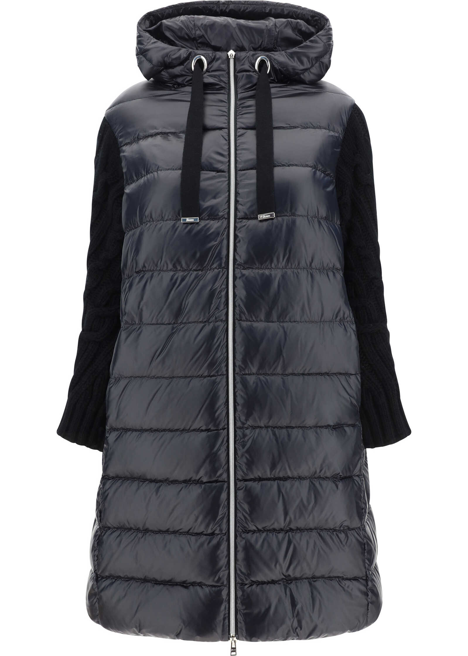 Down Jacket by Herno, midi pattern, high collar with drawstring adjustable hood, two side welt pockets, all-over quilted and padded design, wool sleeves, monochrome pattern, regular fit.