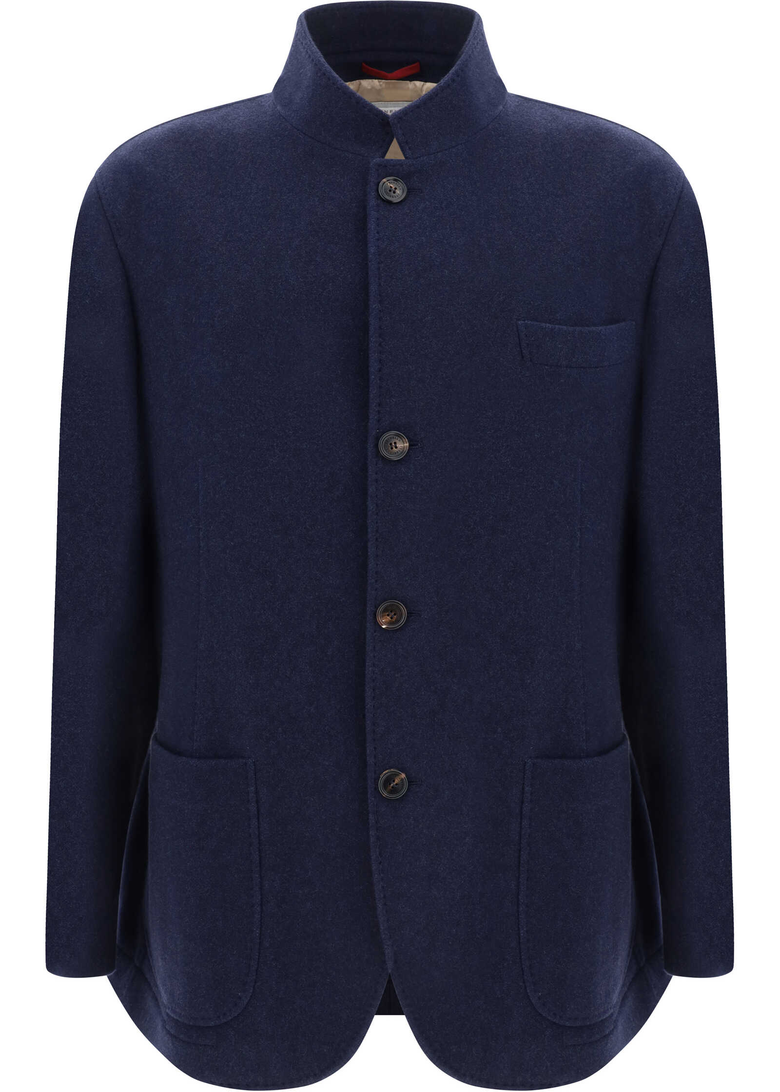Cashmere Jacket by Brunello Cucinelli, featuring a mandarin collar, a front button closure, two welt patch pockets on the front, a slit pocket on the front, a monochrome pattern, and a regular fit.