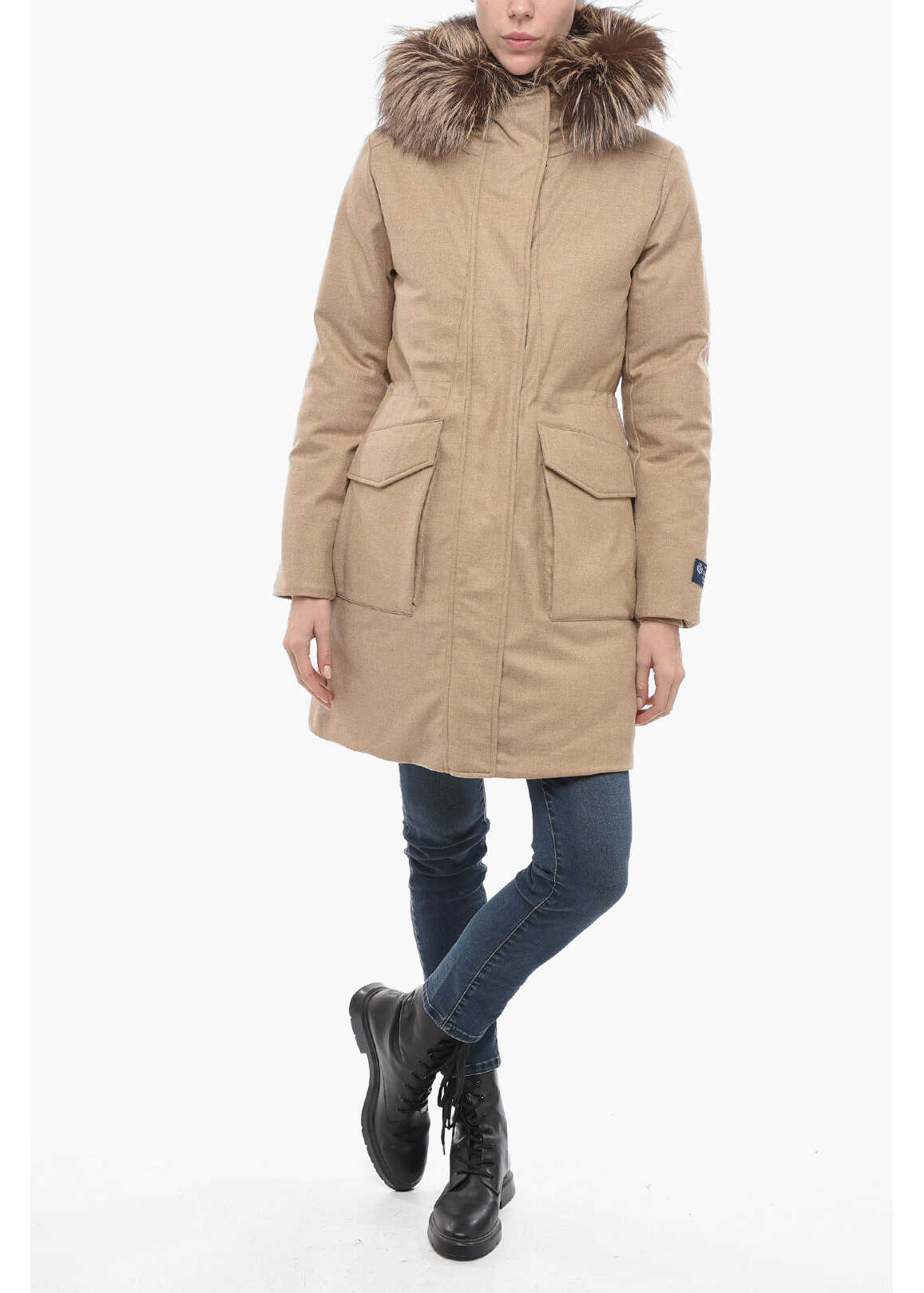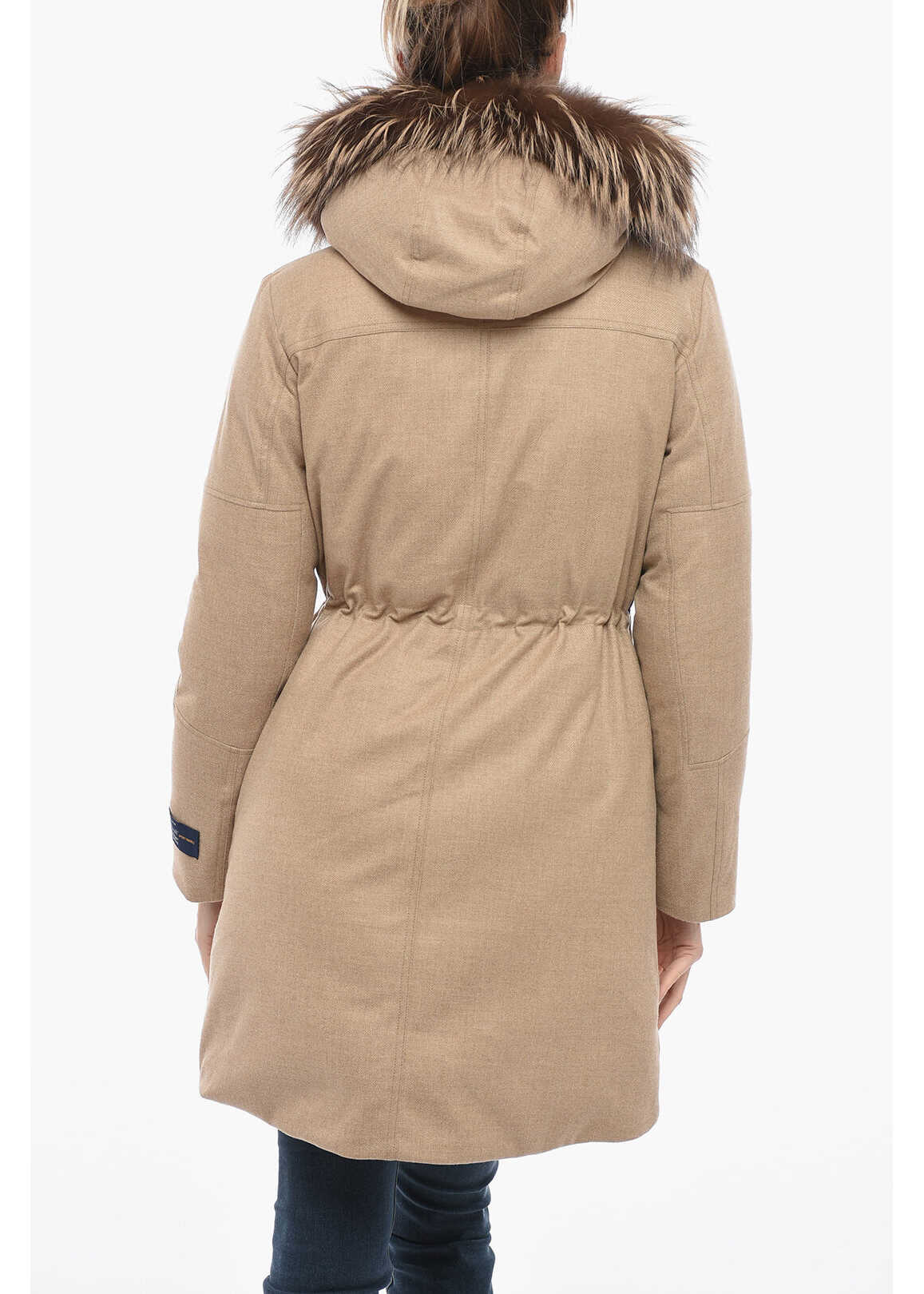 Materials: 93%WV 7%WS + Lining: 100%PA + Padding: 90%GREY DUCK DOWN 10%FEATHER + Fur: 100%DYED SILVER FOX FIN