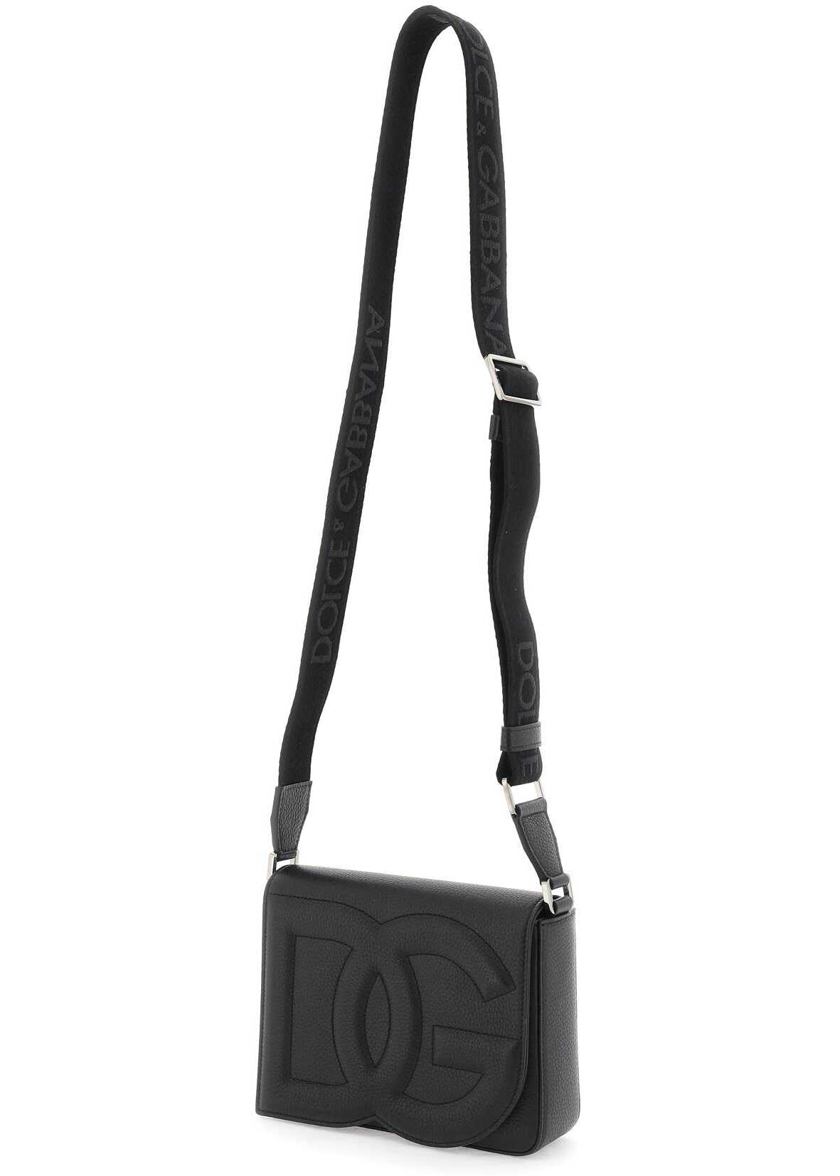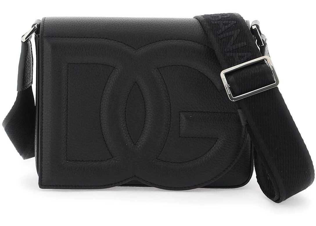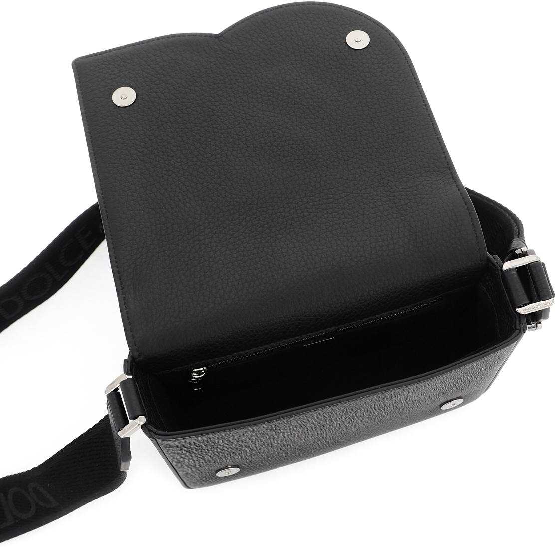This medium-sized Dolce & Gabbana shoulder bag is made of hammered leather and features a flap with a large, stitched DG Logo. It has a magnetic closure with double buttons, a fabric interior with a zip pocket, an adjustable and removable shoulder strap in tonal jacquard ribbon with matching logo, and silver-finished metal accessories.