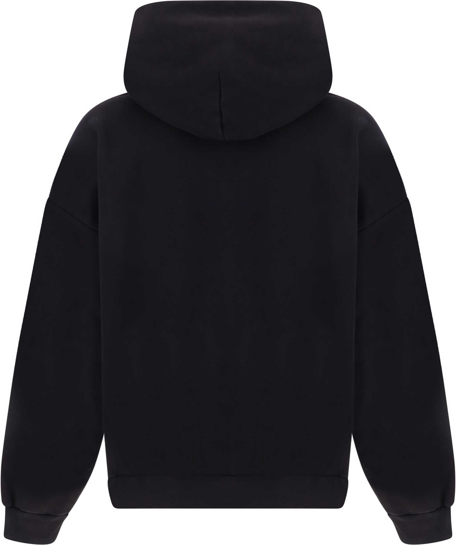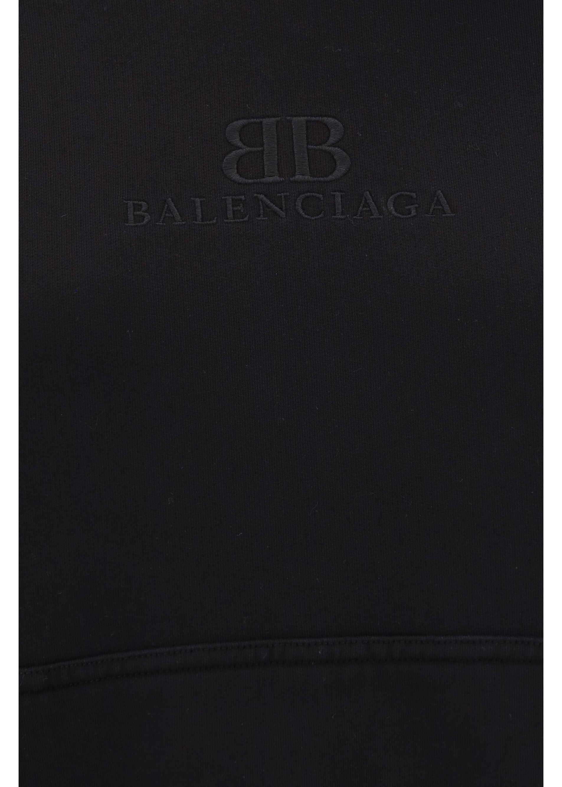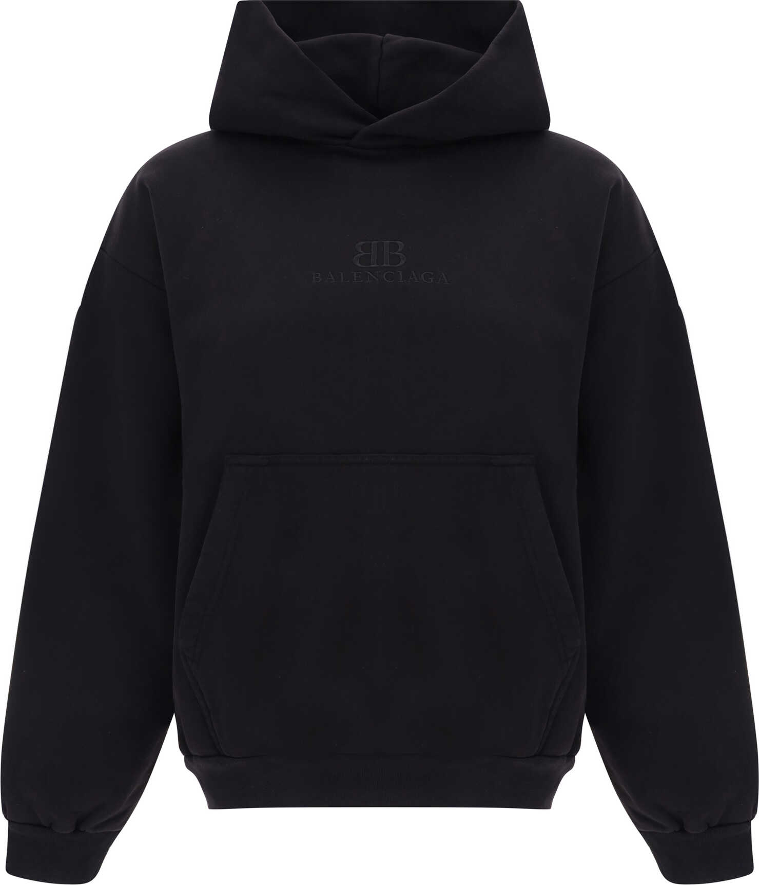 Cotton Hoodie by Balenciaga, featuring ribbed cuffs, ribbed hem, front kangaroo pocket, contrasting iconic brand monogram on front, oversize fit.
