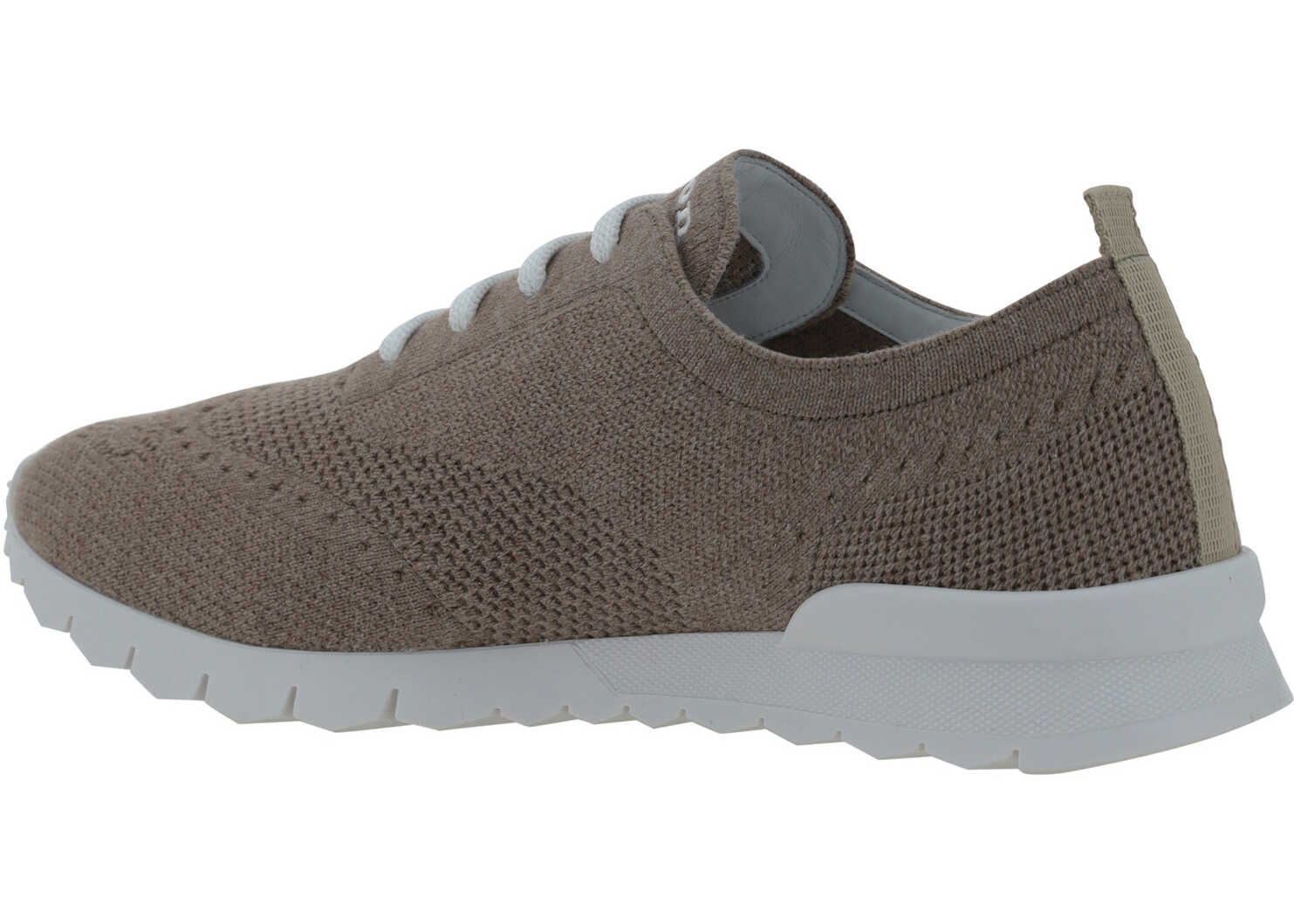 Sneakers by Kiton, slight pointed toe, front lace-up closure, breathable mesh design, contrasting brand signature print heel pull, branded insole.