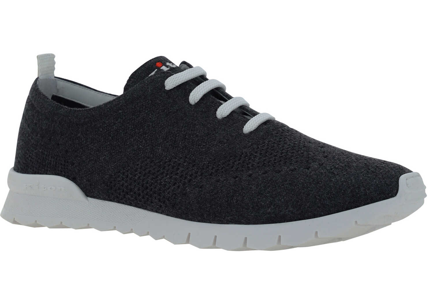 Sneakers by Kiton, slight pointed toe, front lace-up closure, breathable mesh design, contrasting brand signature print heel pull, branded insole.