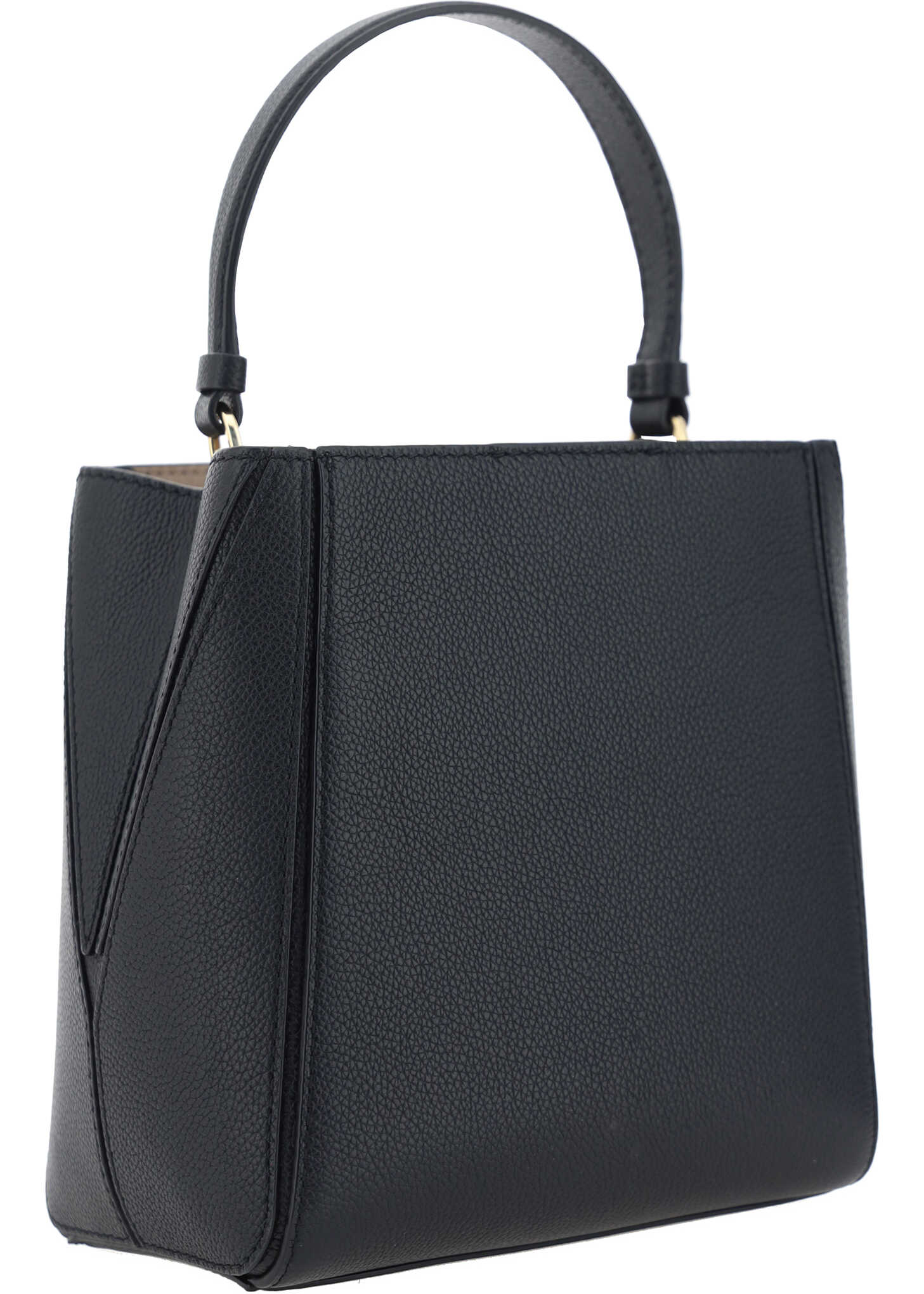 Calfskin Small Mcgraw Handbag by Tory Burch, top closure by concealed magnetic button, three-dimensional plaque with iconic logo and crafted in tone-on-tone leather on front, grained leather design, stiff top handle.